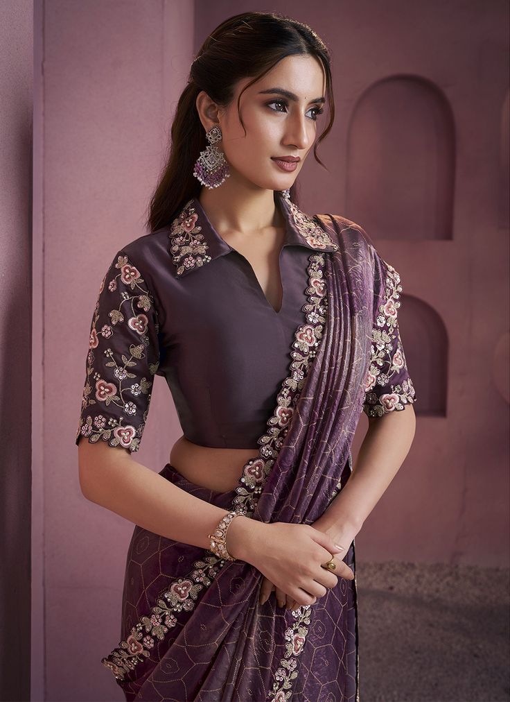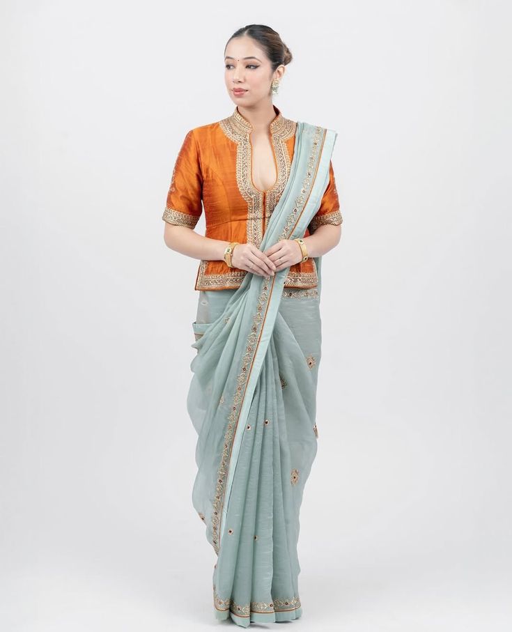 For a royal and luxurious vibe, choose a velvet blouse with golden embroidery or zari work. It looks stunning with silk or Banarasi sarees and adds warmth for the season.