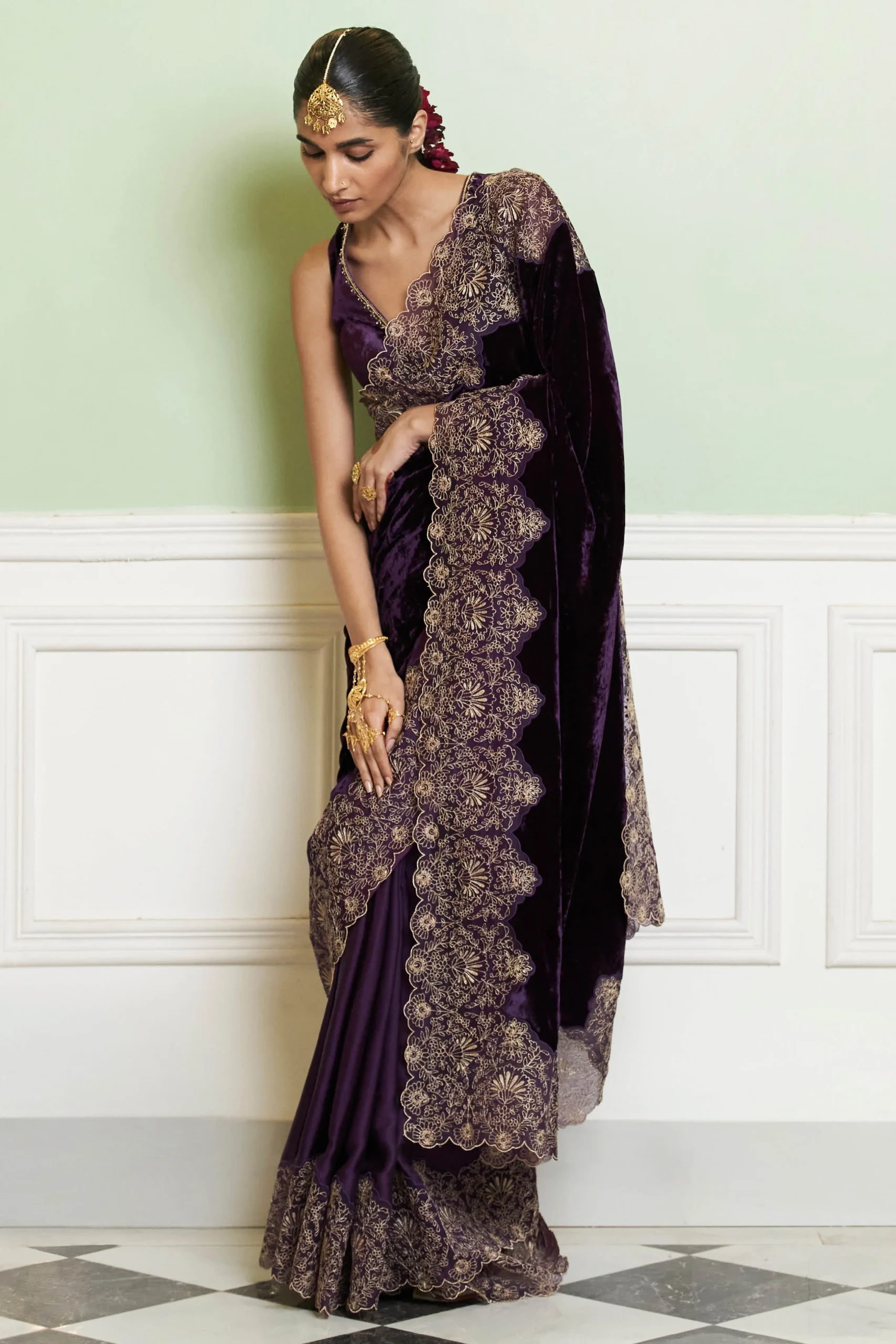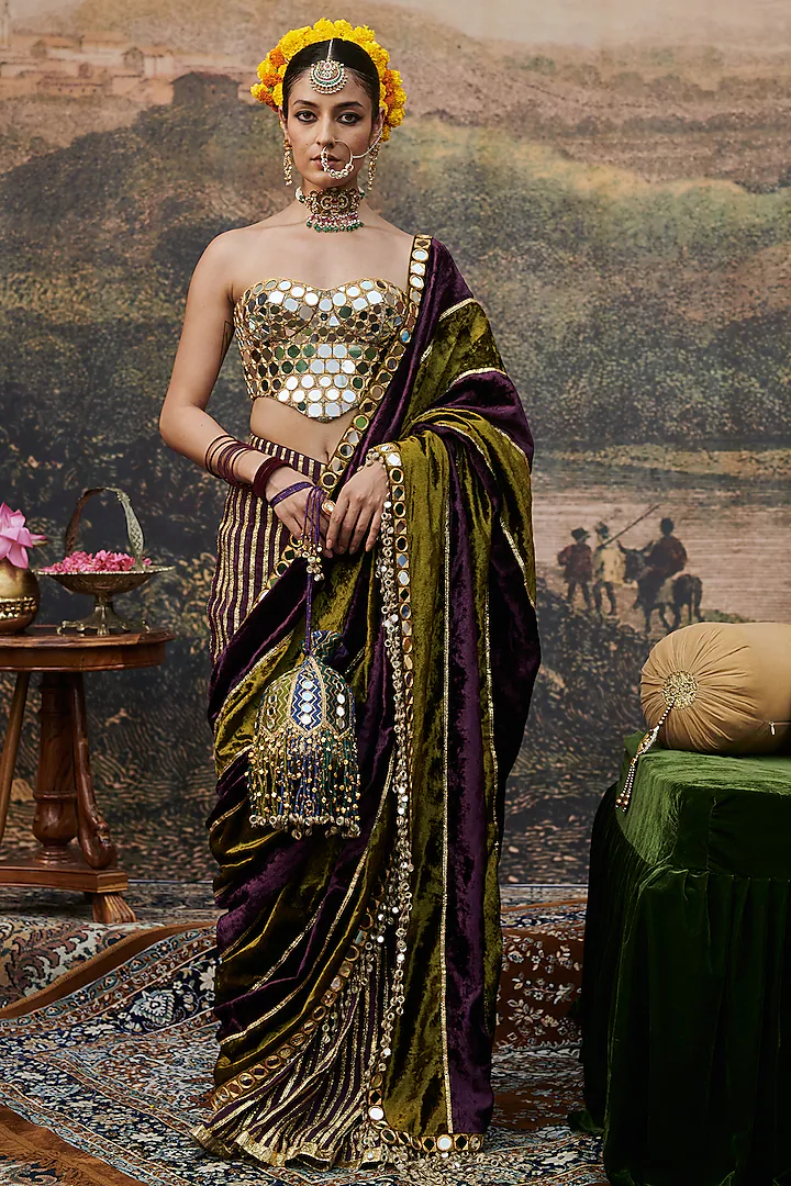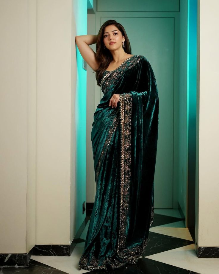 Trending Choice: Velvet saree with silk or brocade blouse.