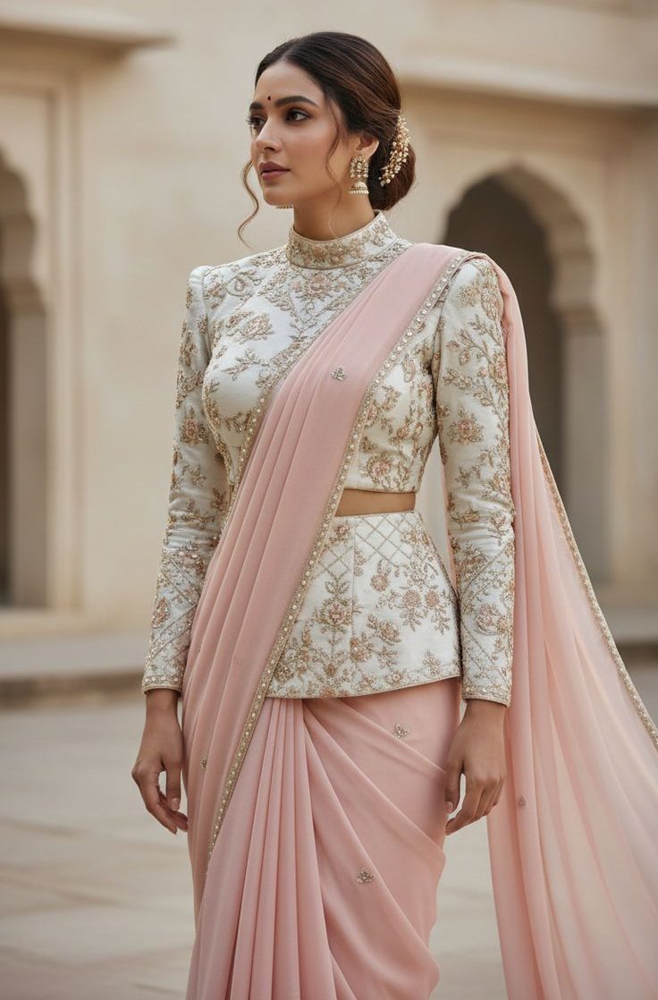 Peplum blouses are becoming very trendy. Celebrities often style this blouse with sarees for a unique fashion statement.