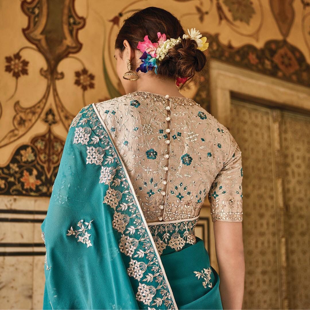 The blouse design should match this vibe either with traditional handwork or smart modern cuts paired with ethnic detailing.