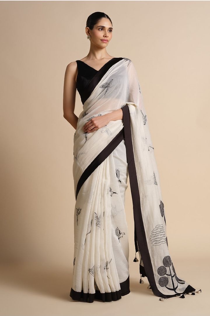 Yes! A black blouse with a white saree looks bold and elegant. It’s a perfect combination for evening parties or formal events. Pair it with silver or oxidized jewelry for a modern yet traditional look.