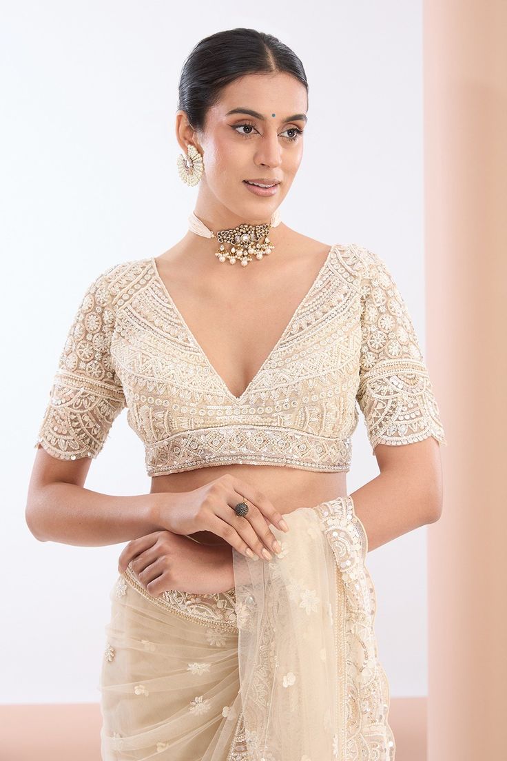 - Balance the look – If your saree is heavy, opt for a simple blouse; if your saree is plain, go for a statement blouse.