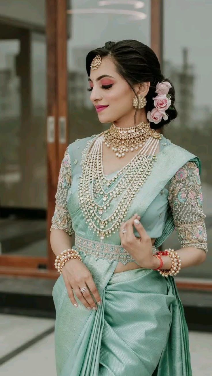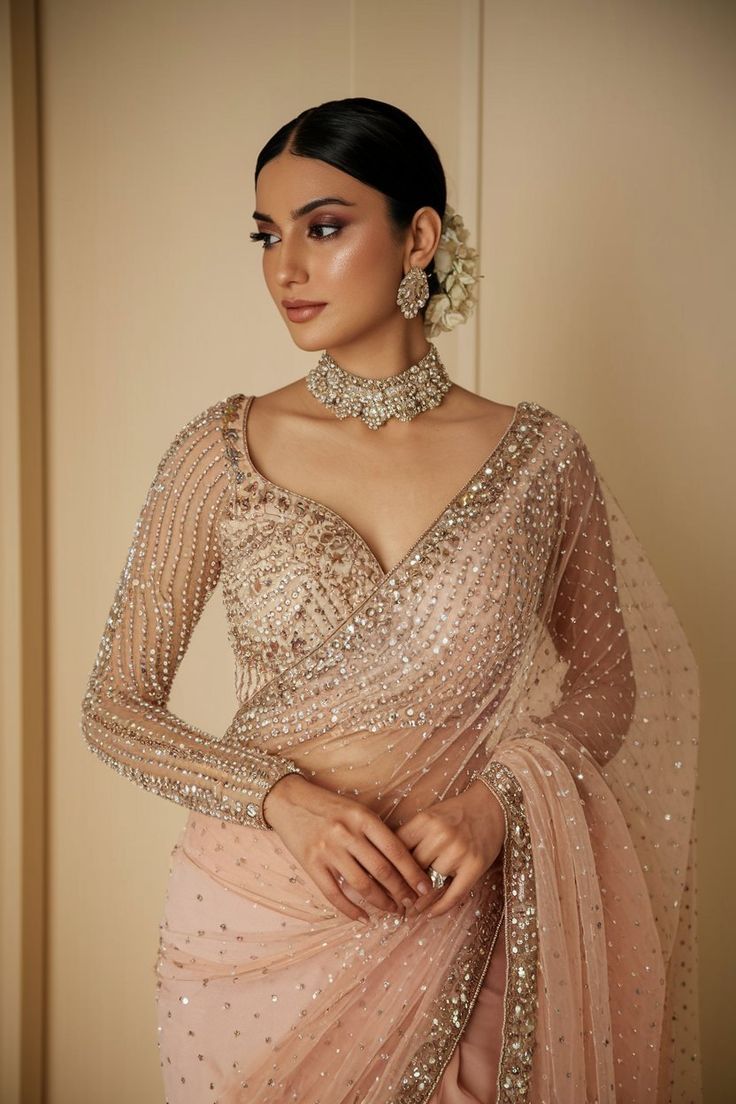 For those who love sparkle, stone and sequin work, blouses are a perfect choice. They catch light beautifully, making you glow at evening receptions or sangeet functions. Go for deep necklines or stylish back designs to add a modern twist.