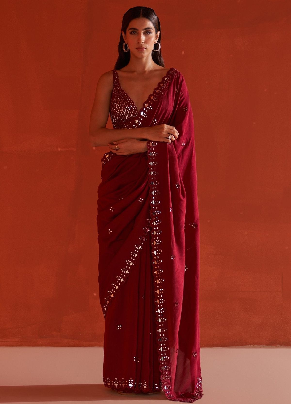 Q2. शादी के लिए मरून साड़ी के साथ कौन सा ब्लाउज पहनना चाहिए?