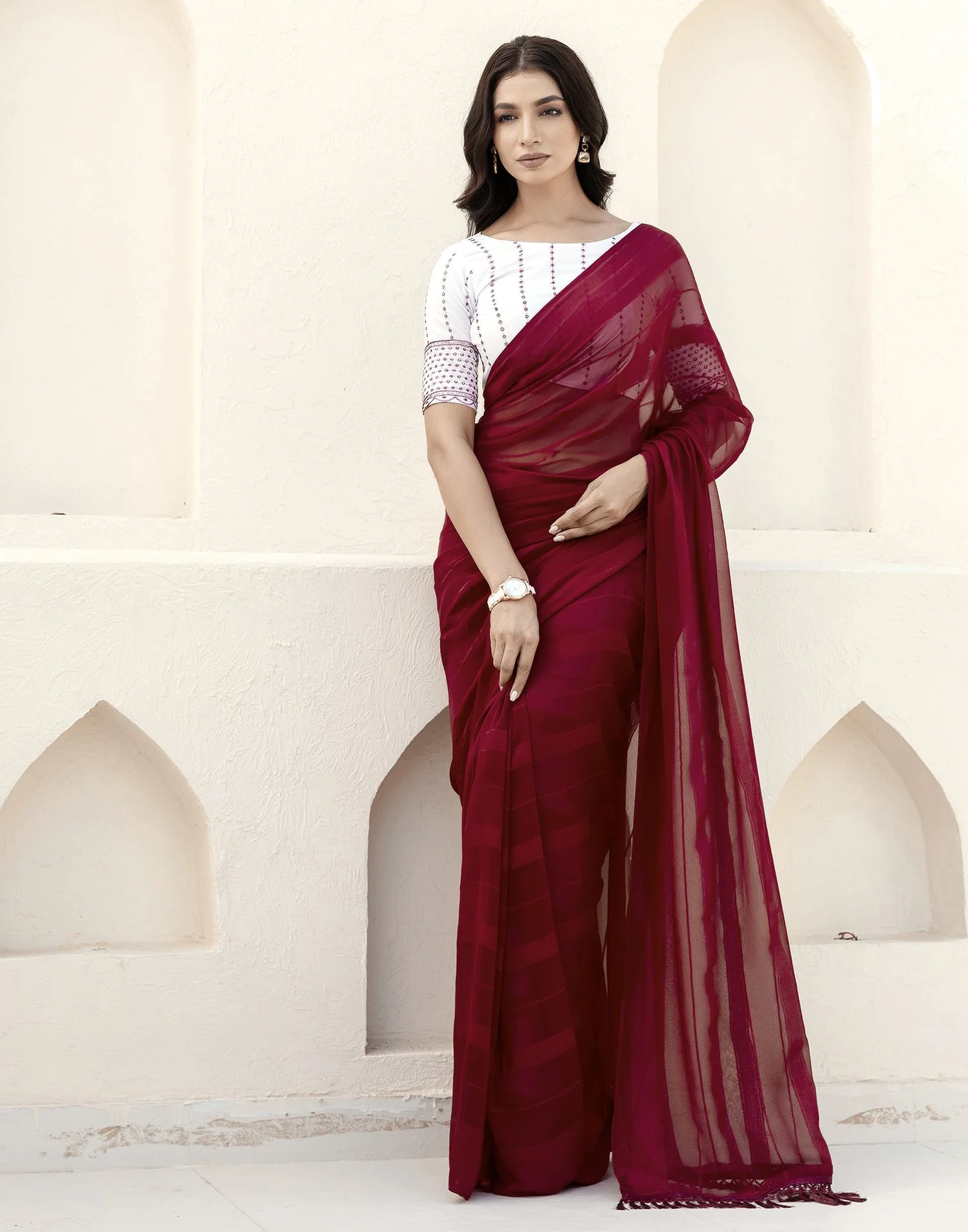 Q9. मरून साड़ी के साथ ज्वेलरी कैसे चुनें?