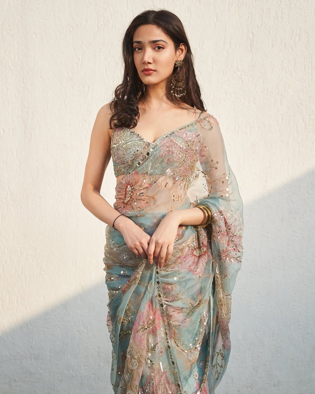 Style Tip: Match it with a floral organza saree for a soft, dreamy look.