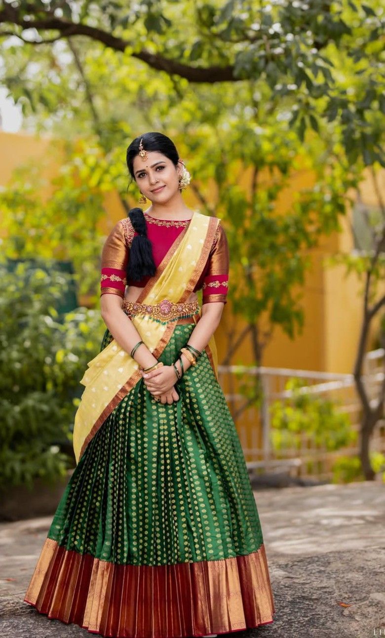 If you are looking for stylish and trendy blouse ideas, here are the top 10 perfect langa voni blouse designs that are ideal for any half saree ceremony.