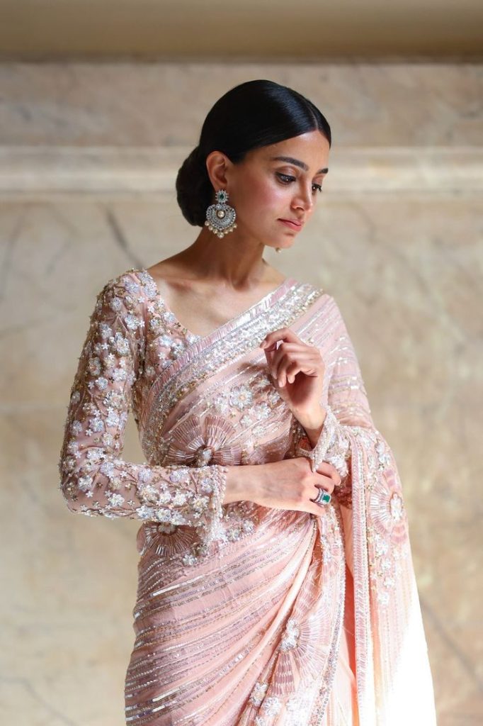 Opt for a readymade blouse with full sleeves for a sophisticated and modest look. These blouses provide elegance and warmth, perfect for evening events or colder seasons.