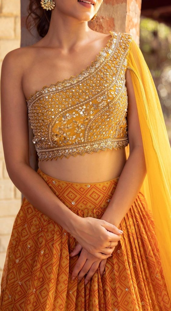 For festive occasions or weddings, a readymade golden blouse adds a touch of elegance and grandeur. This blouse enhances any traditional outfit and is perfect for pairing with sarees or lehengas.