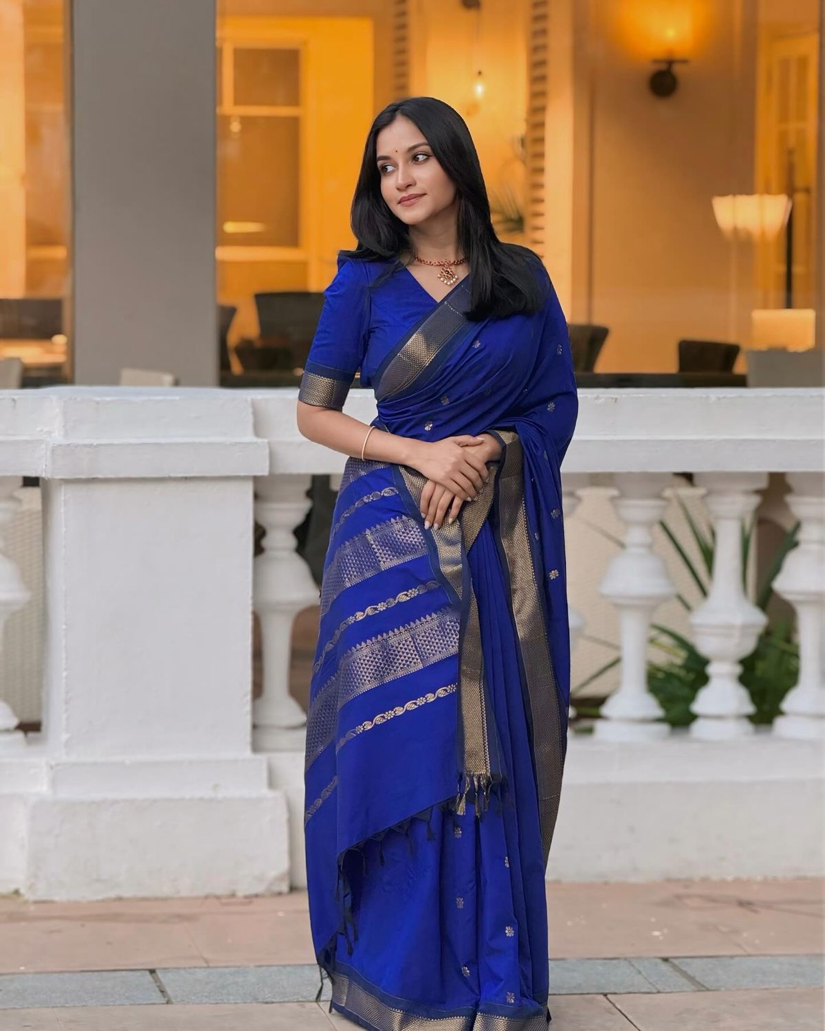 A royal blue or navy blue saree looks elegant, especially in fabrics like silk, satin, or georgette. You can also try embroidered blue sarees for a more glamorous Diwali look.