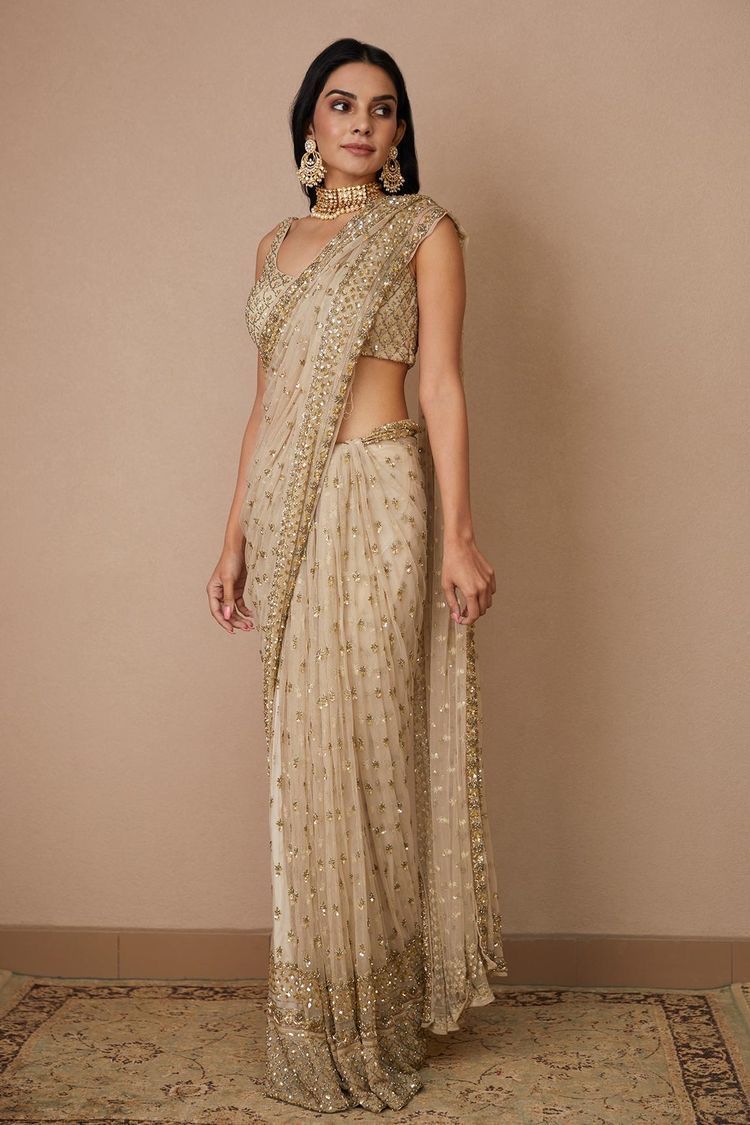 Styling Tip: Style it with a sleeveless blouse, layered chains, and glossy makeup for an elegant and modern festive look.