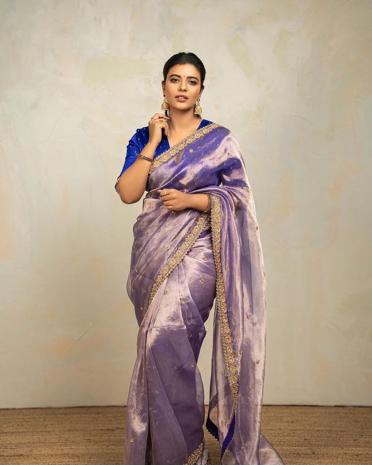 Style Tip: Go for contrasting blouse colors to make the saree pop.