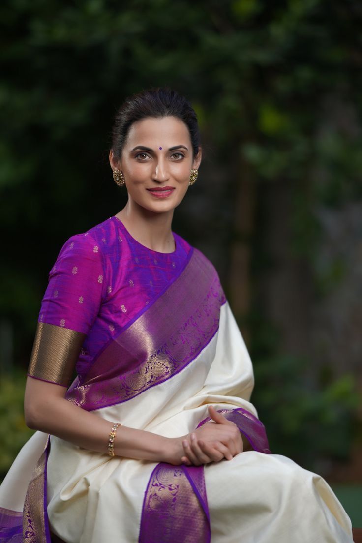 • Match your accessories: temple jewellery, gajra, small bindi and neatly pleated pallu complete the look.