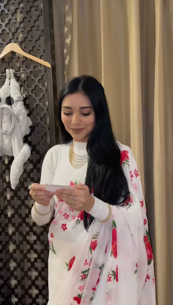 Tanya Mittal’s style often breaks the monotony with creative combinations. From printed sarees with plain blouses to contrasting color pairings, her looks are all about balance and innovation.