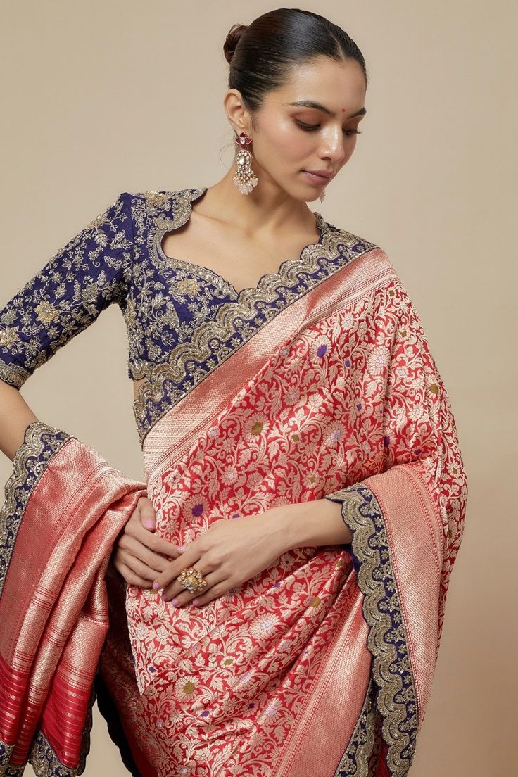 Pair silk blouses with cotton silk, pure silk, or handloom sarees for a graceful festive look.