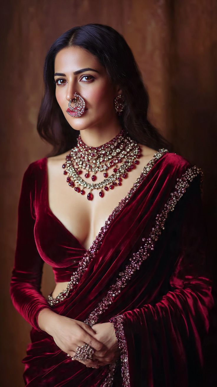Velvet blouses are perfect for night festivals and winter celebrations. They look rich and royal, especially when paired with silk or Banarasi sarees.
