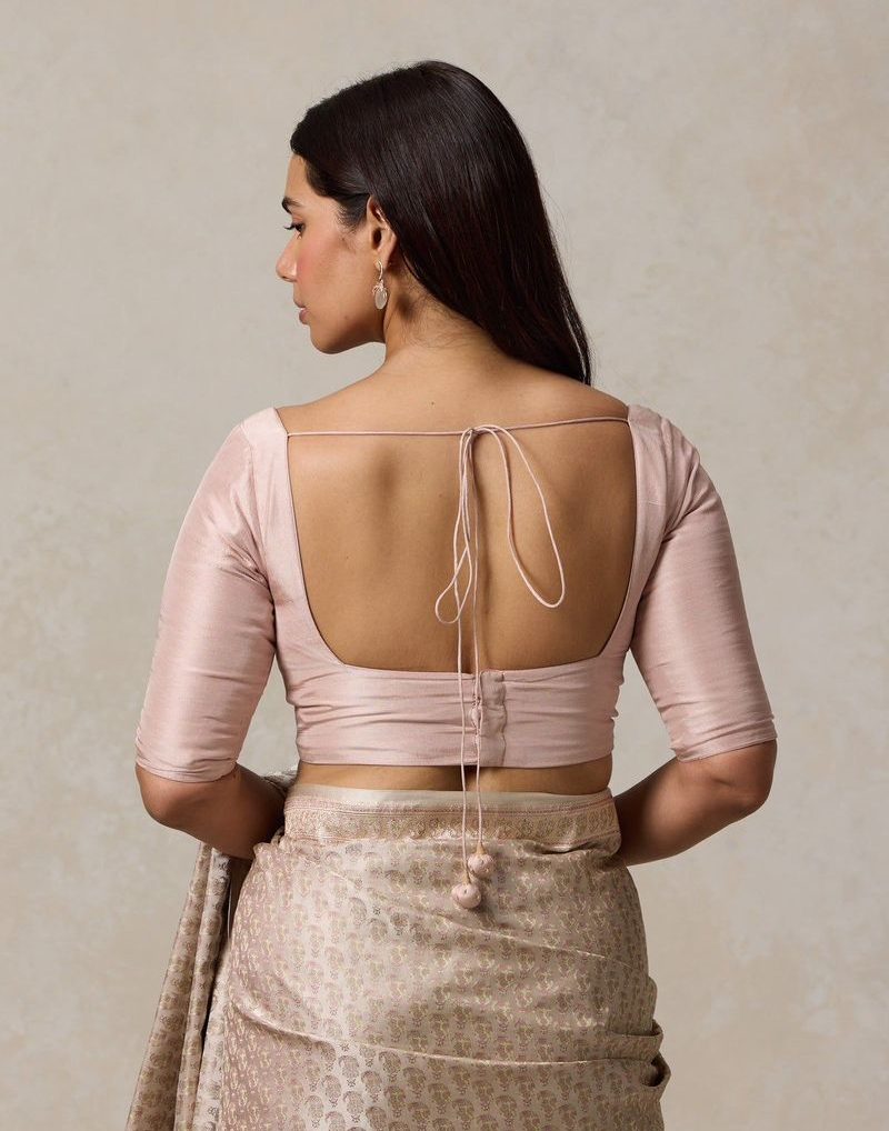 A timeless choice that suits every saree type! The round wide-neck blouse gives a balanced and elegant look, ideal for both silk and cotton sarees. You can also style it as a bridal blouse by adding embroidery, zari borders, or stone work for a grand festive touch.