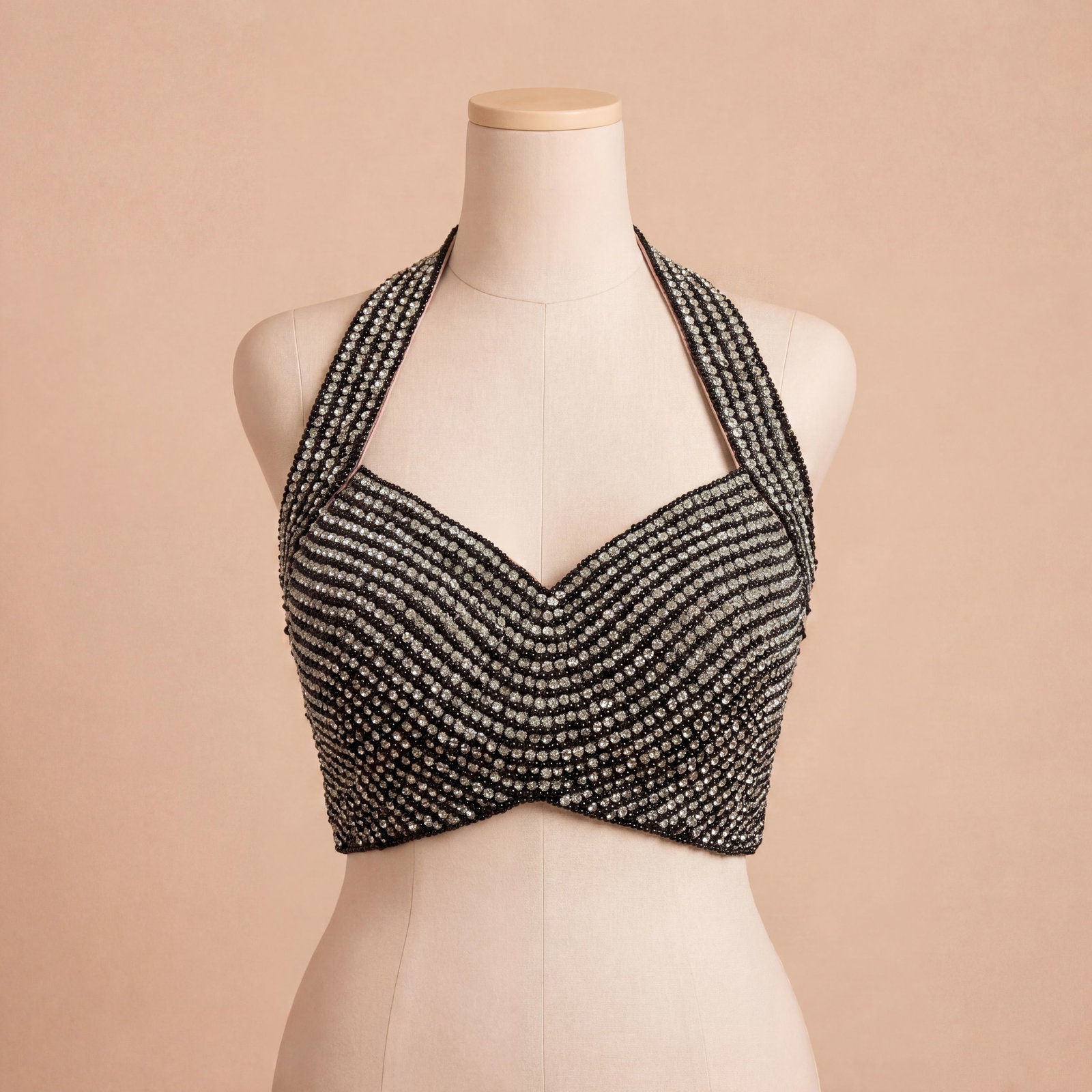 Add a touch of glamour to your ethnic wardrobe with this stunning black halter neck blouse, adorned with intricate bead and sequin embroidery. Designed with a flattering sweetheart neckline and elegant draped pattern, it enhances your silhouette beautifully. Perfect for cocktail parties, weddings, and festive occasions, this blouse offers a premium finish with a bold and sophisticated appeal.