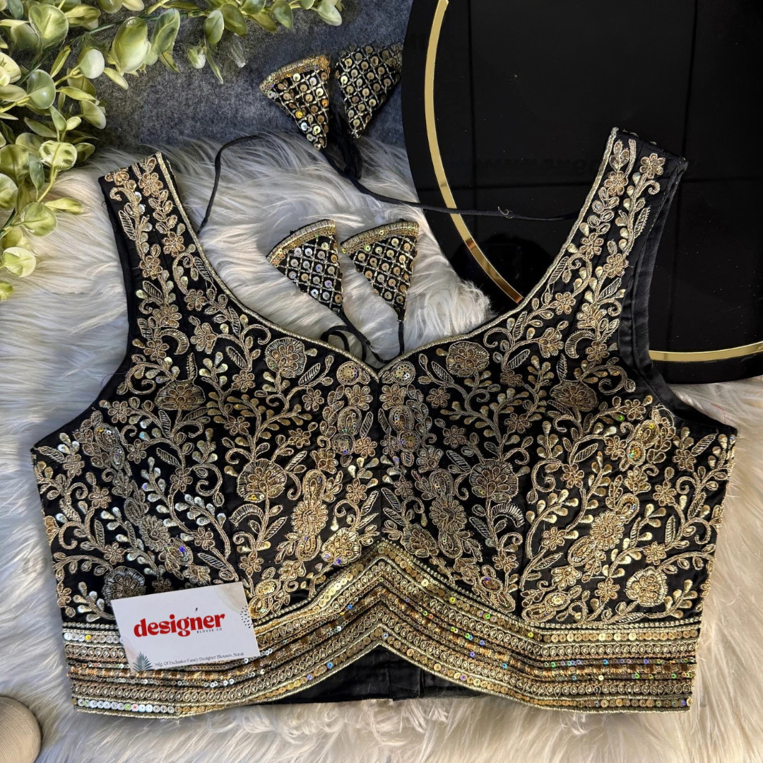 Elevate your saree look with this Italian silk designer blouse featuring heavy coding and shimmering sequin work. This readymade blouse comes padded with pure cotton lining, full sleeves and back-open hooks. it delivers a truly elegant premium finish for weddings, parties, and festive occasions.