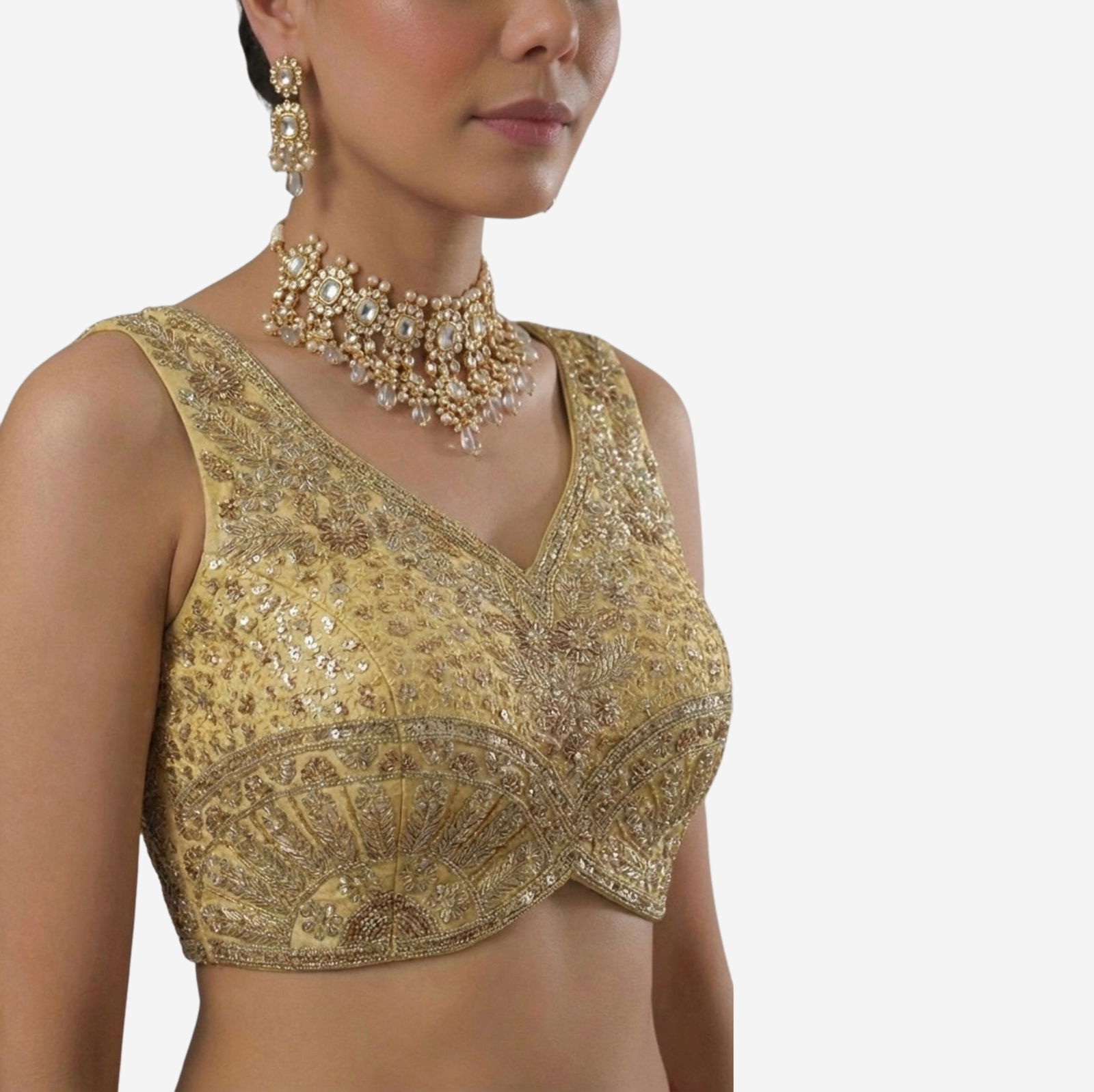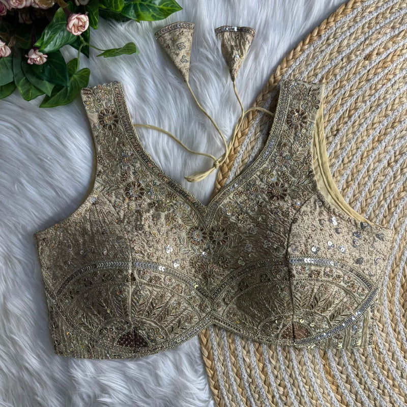 Turn heads at every function in this Heavy Jari + Sequence Thread Work partywear blouse, crafted in premium Heavy Soft Roman Silk for a rich, smooth feel and a festive shine. The blouse features beautiful handmade detailing with heavy stitching for a perfect structured look, along with heavy padding that gives an elegant shape and confident fit.
