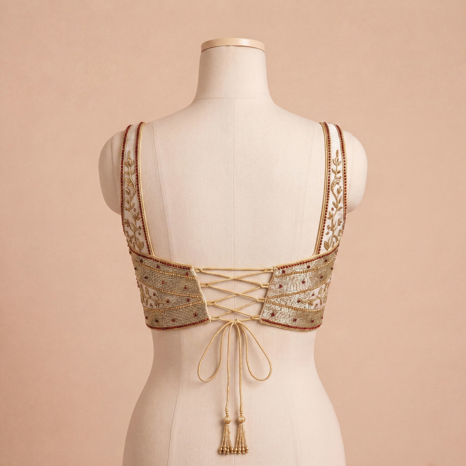 : Zardosi Handwork (floral motif embroidery with bead/sequin detailing)