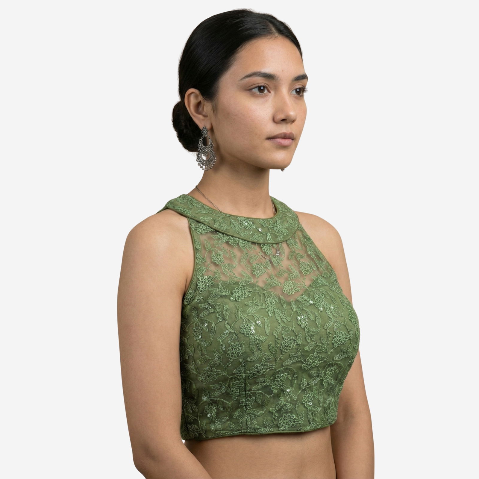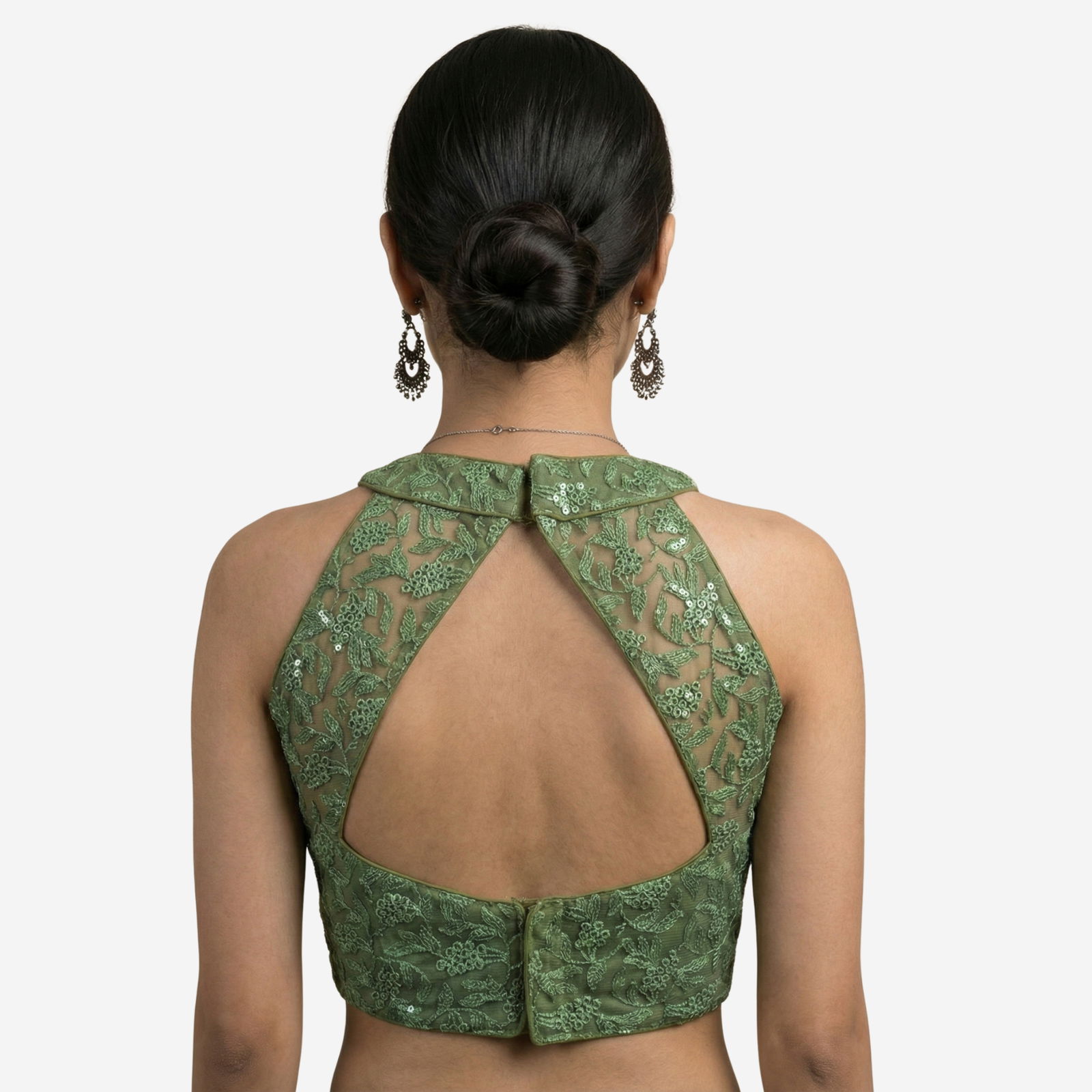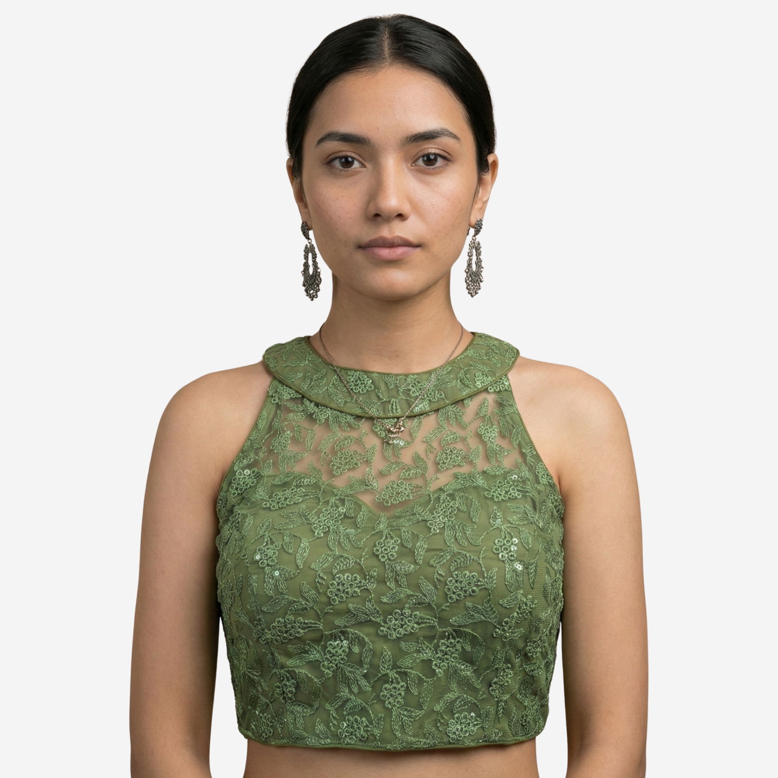 This designer partywear blouse is crafted from premium imported net, featuring heavy stitching, padding, and intricate work that adds charm to any festive or wedding look. Designed in a stylish back open pattern with detailed craftsmanship, it's a versatile piece that fits beautifully and offers alterable sizing from 36 to 40.
