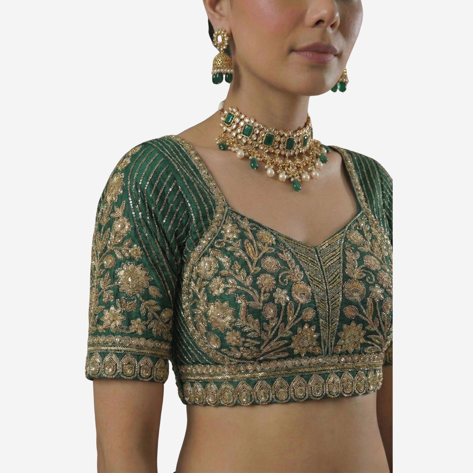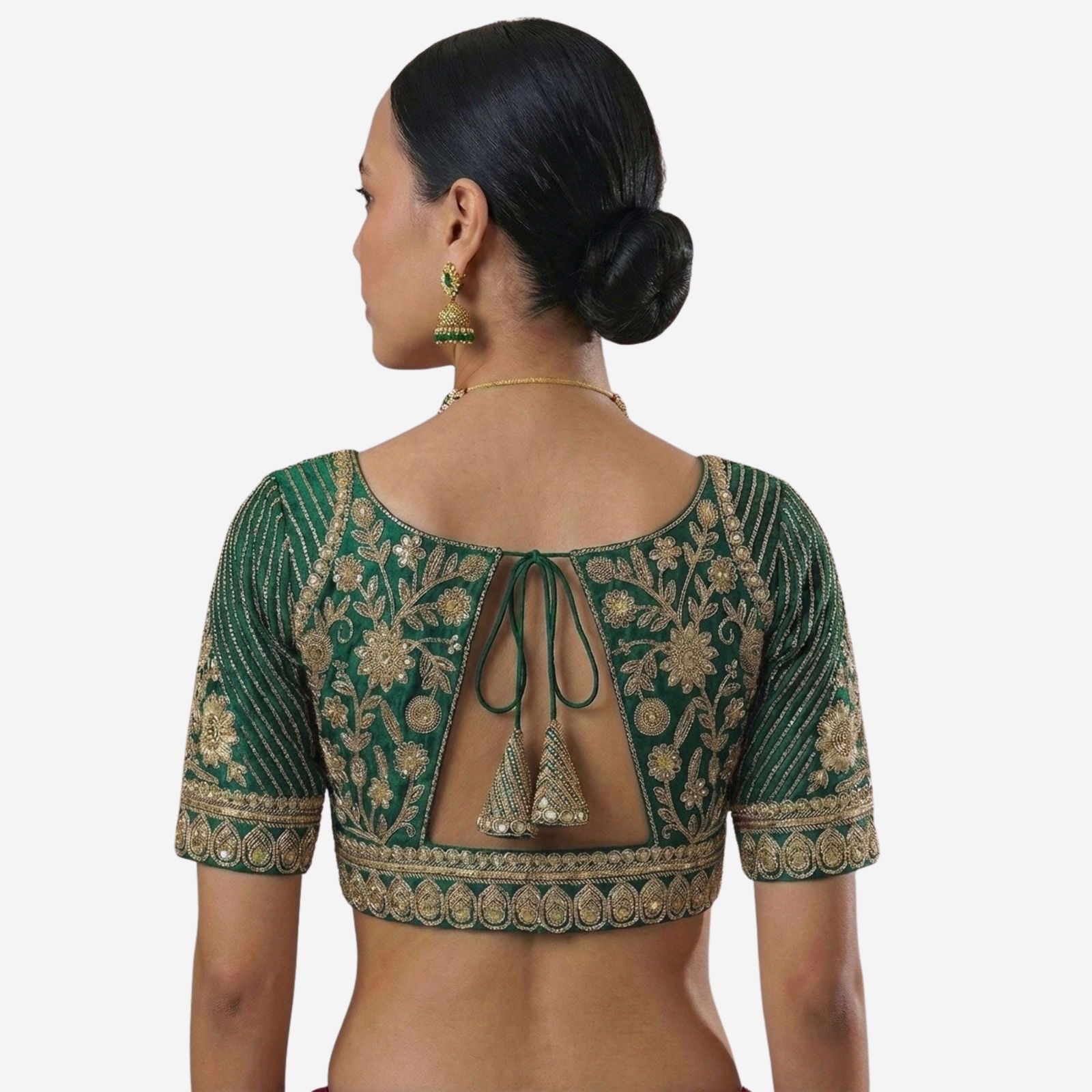 This stunning royal purple blouse is a masterclass in traditional craftsmanship and contemporary elegance. Designed to be the centerpiece of your ethnic ensemble, it features intricate gold zardosi and thread work that radiates luxury.