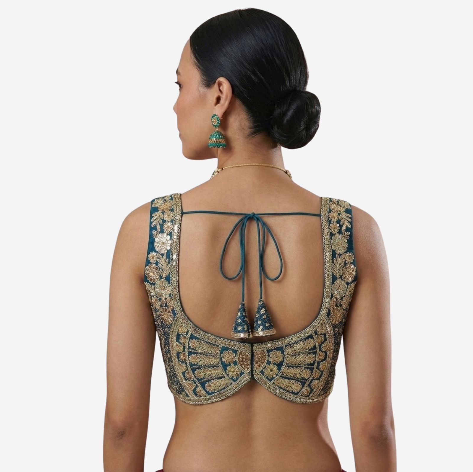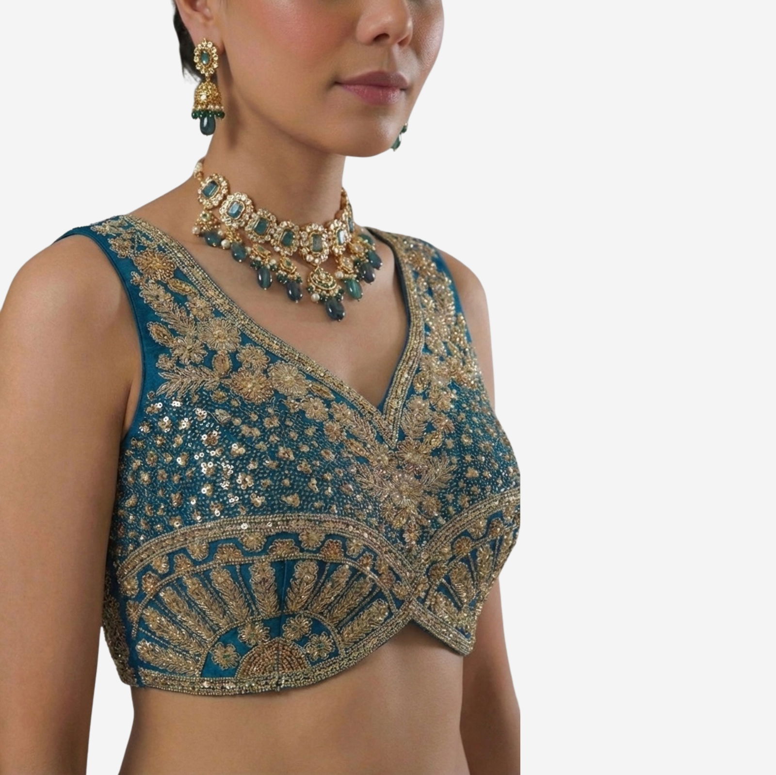 Turn heads at every function in this Heavy Jari + Sequence Thread Work partywear blouse, crafted in premium Heavy Soft Roman Silk for a rich, smooth feel and a festive shine. The blouse features beautiful handmade detailing with heavy stitching for a perfect structured look, along with heavy padding that gives an elegant shape and confident fit.