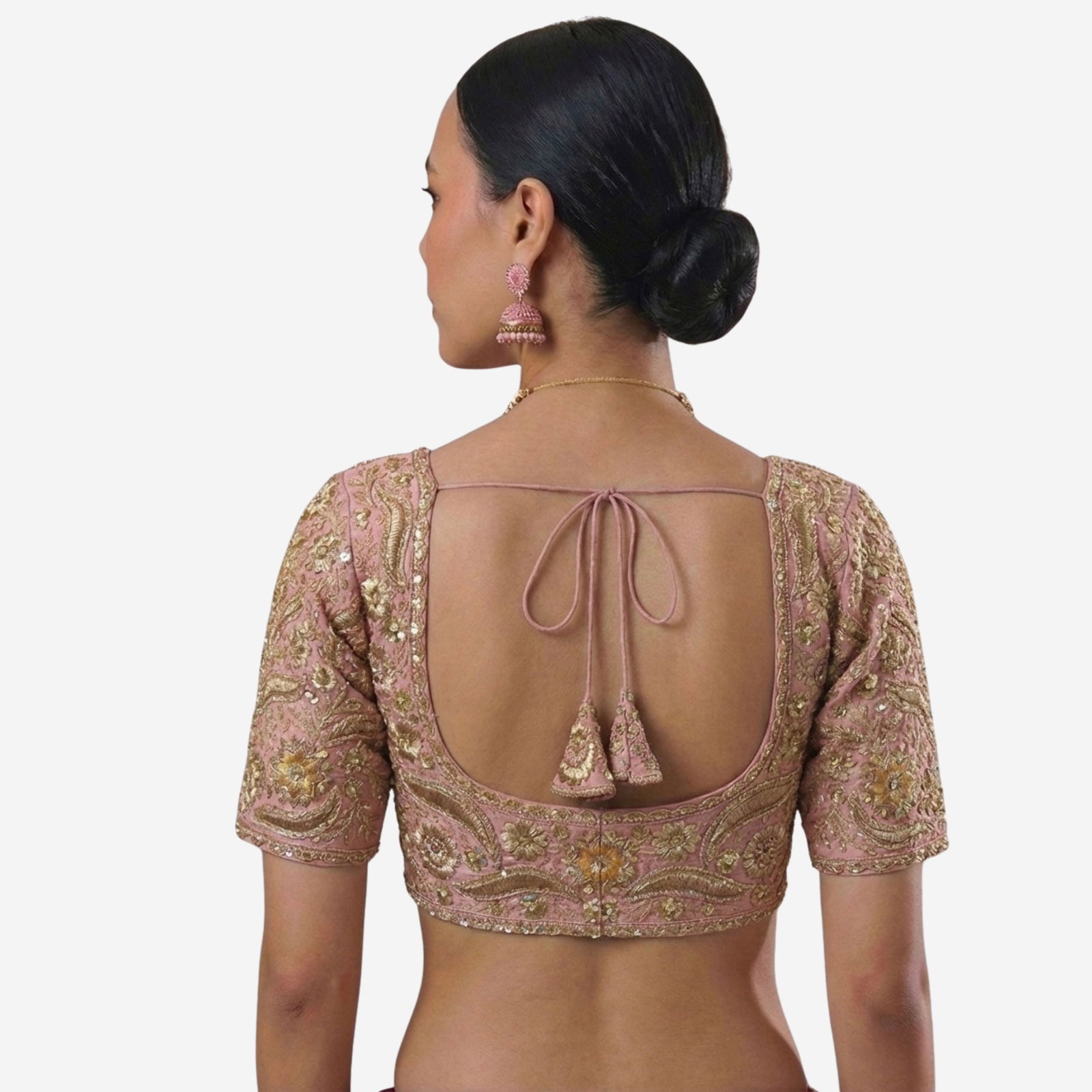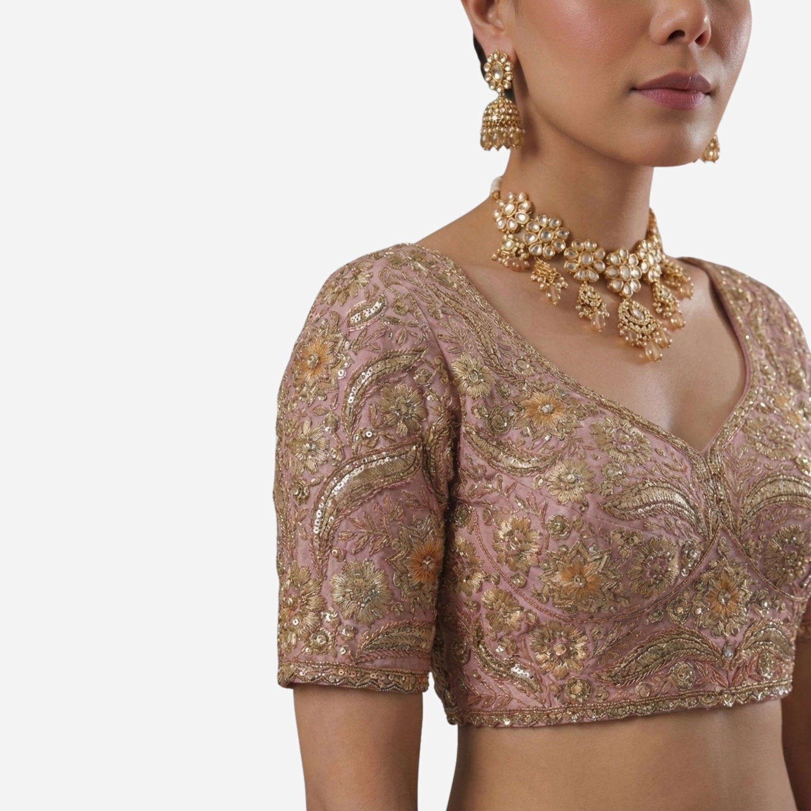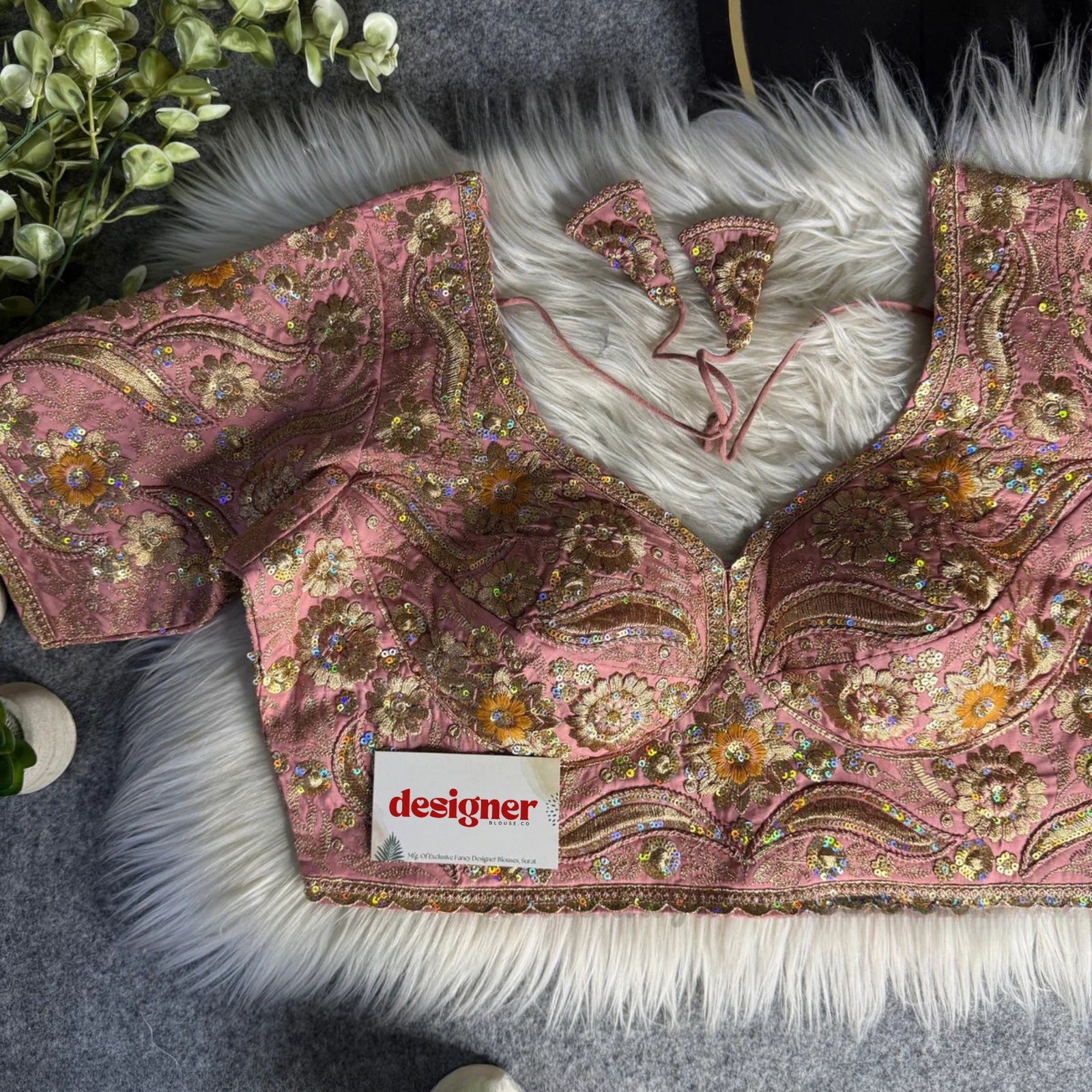 Elevate your bridal look with our Sabyasachi neck Italian Silk readymade blouse, richly embroidered with jari work. This designer bridal blouse offers a regal fit, cotton lining, and padding for comfort. Perfect for weddings, sangeet, and receptions, it pairs beautifully with sarees or lehengas for luxury and a radiant shine.