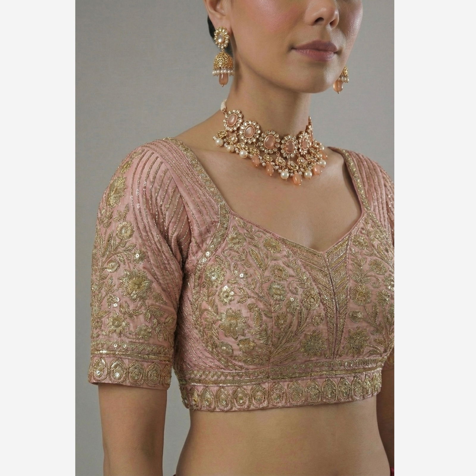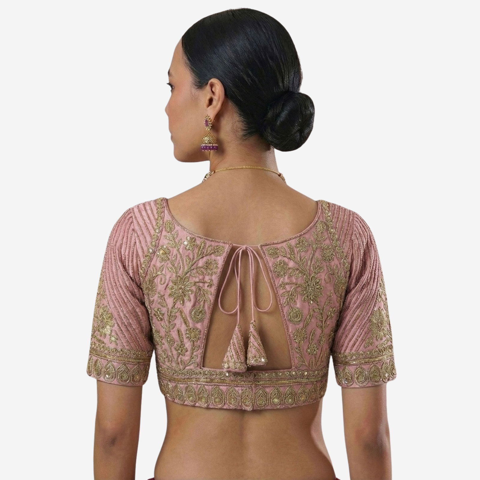 This stunning royal purple blouse is a masterclass in traditional craftsmanship and contemporary elegance. Designed to be the centerpiece of your ethnic ensemble, it features intricate gold zardosi and thread work that radiates luxury.