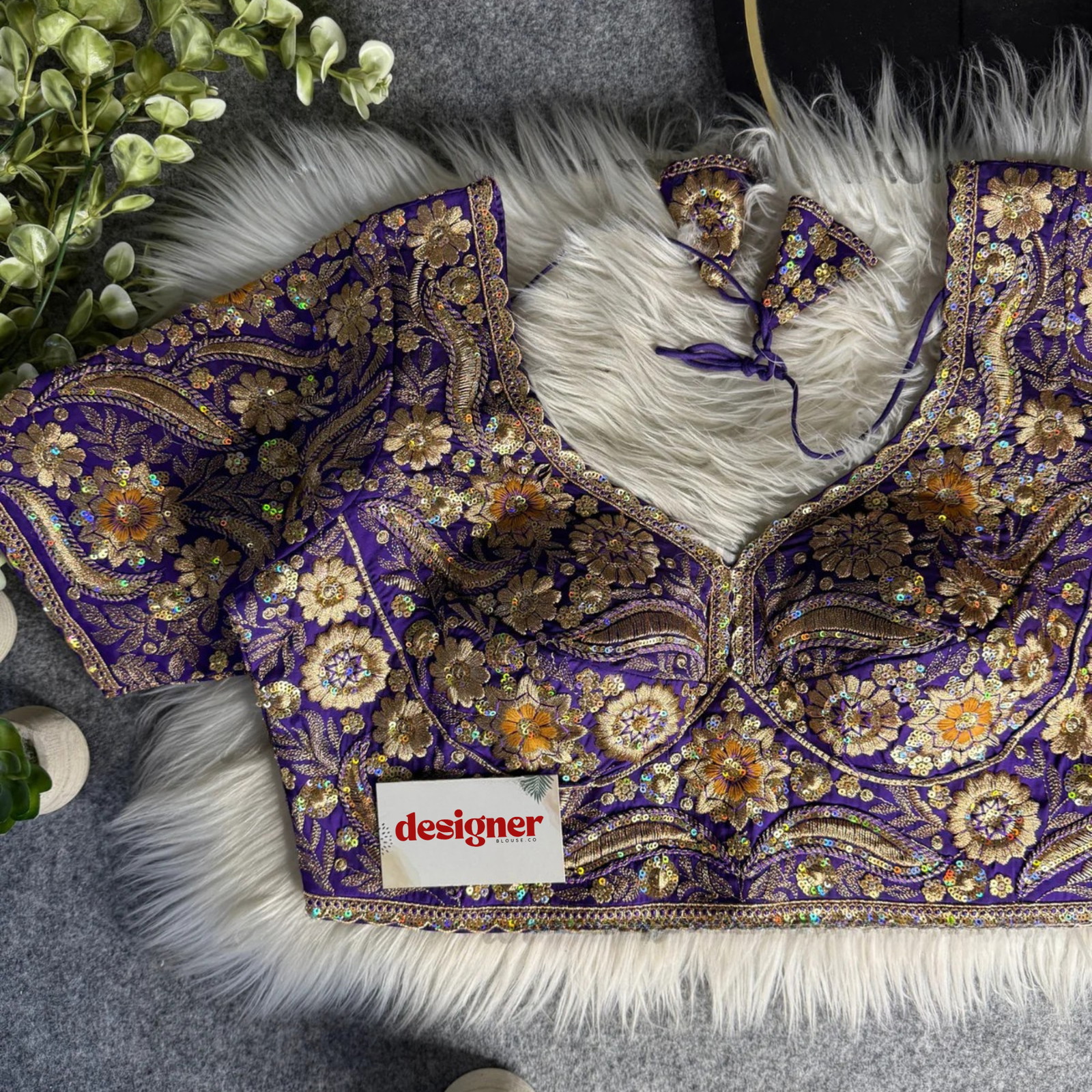 Elevate your bridal look with our Sabyasachi neck Italian Silk readymade blouse, richly embroidered with jari work. This designer bridal blouse offers a regal fit, cotton lining, and padding for comfort. Perfect for weddings, sangeet, and receptions, it pairs beautifully with sarees or lehengas for luxury and a radiant shine.