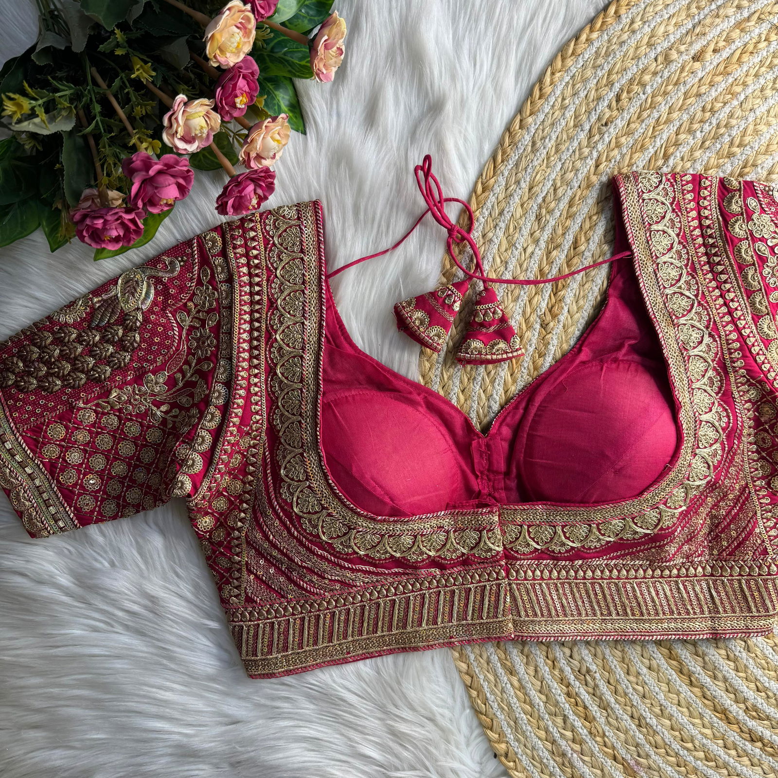 This luxury designer spaghetti blouse features intricate heavy embroidery with rich sequin and bead handwork, creating a stunning textured finish and premium festive appeal. Crafted from premium roman silk fabrics, this elegant yellow color blouse is designed for party, wedding, and special occasion wear. It offers a sleek, flattering fit with elegant shoulder straps for a modern silhouette. Perfect to pair with sarees, lehengas, or skirts for a glamorous and sophisticated ethnic look.