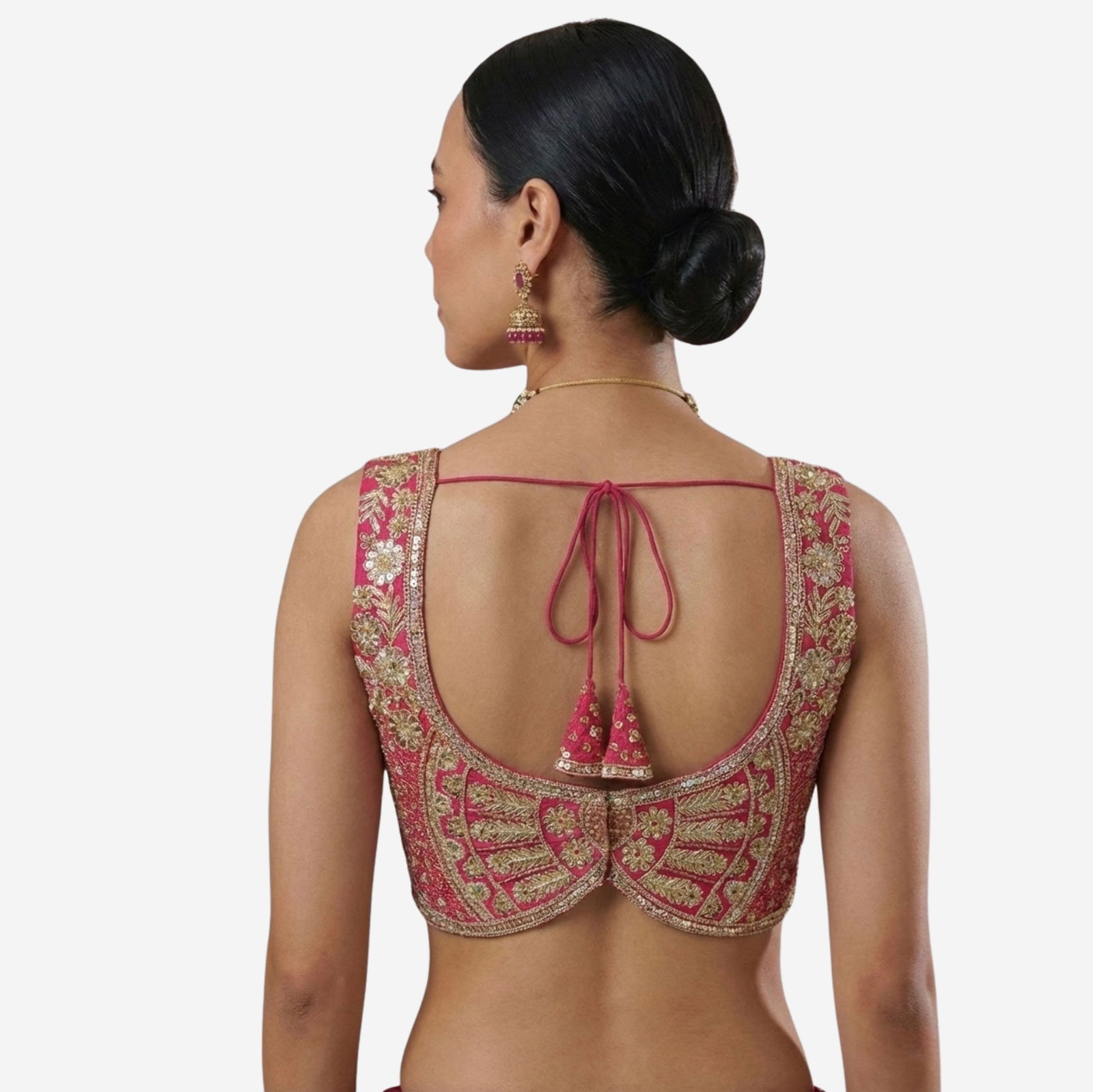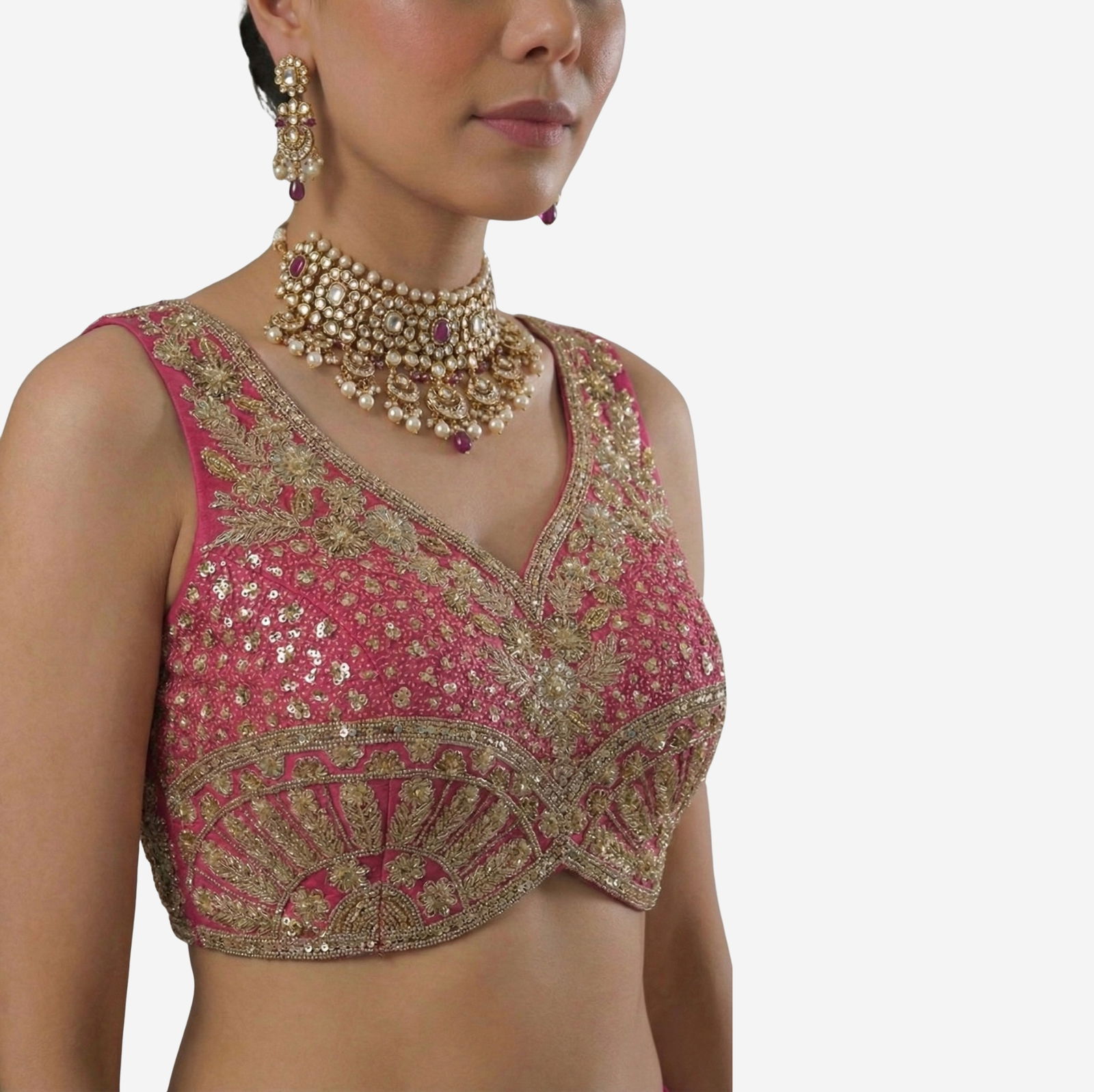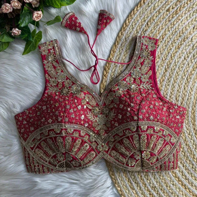Turn heads at every function in this Heavy Jari + Sequence Thread Work partywear blouse, crafted in premium Heavy Soft Roman Silk for a rich, smooth feel and a festive shine. The blouse features beautiful handmade detailing with heavy stitching for a perfect structured look, along with heavy padding that gives an elegant shape and confident fit.