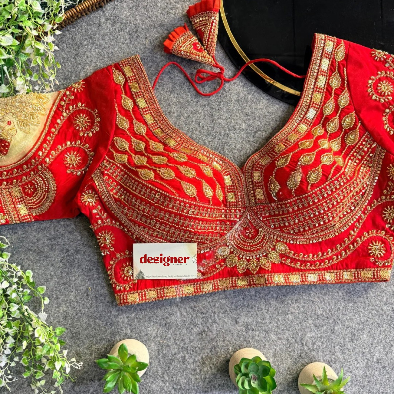 Step into pure elegance with this stunning Sabyasachi-style designer blouse, crafted to add a luxurious charm to your ethnic outfits. Made from rich Roman Silk fabric, it features a soft shimmer, smooth finish, and structured fit that instantly elevates your saree look.