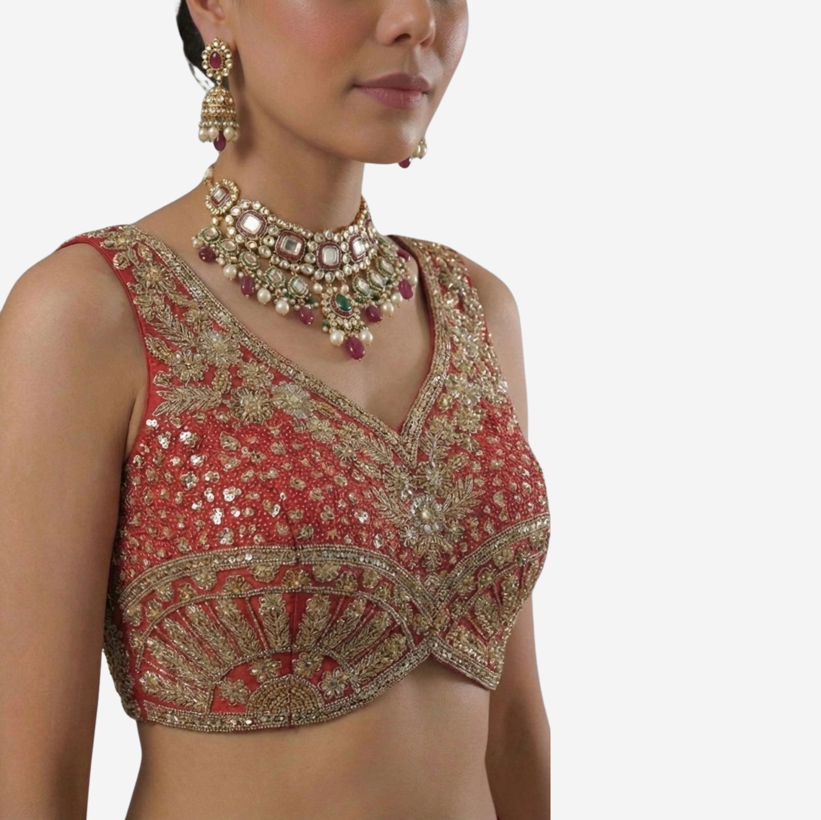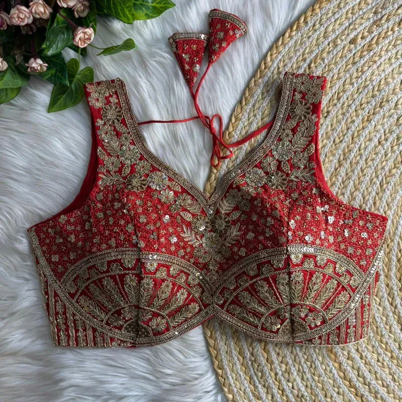 Turn heads at every function in this Heavy Jari + Sequence Thread Work partywear blouse, crafted in premium Heavy Soft Roman Silk for a rich, smooth feel and a festive shine. The blouse features beautiful handmade detailing with heavy stitching for a perfect structured look, along with heavy padding that gives an elegant shape and confident fit.