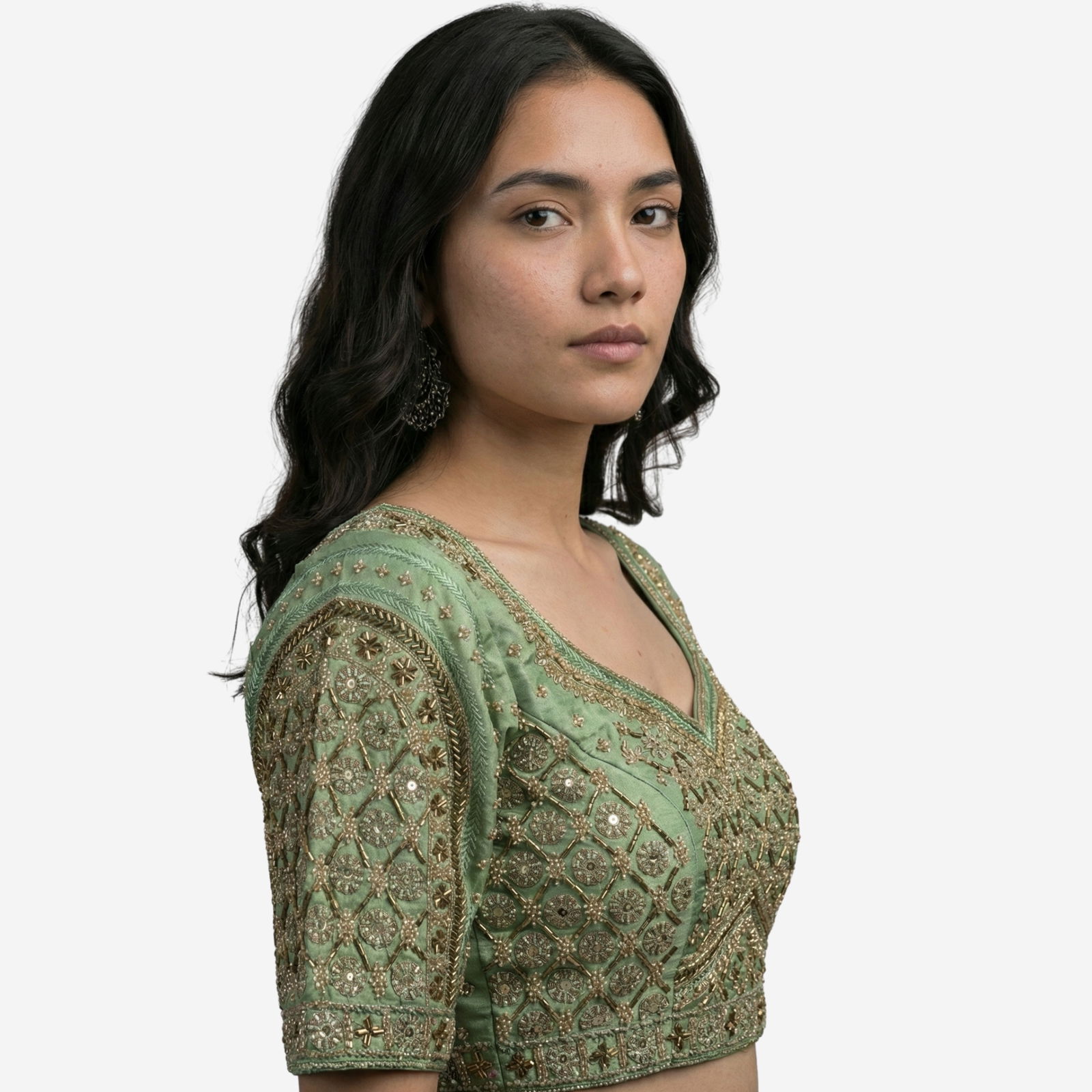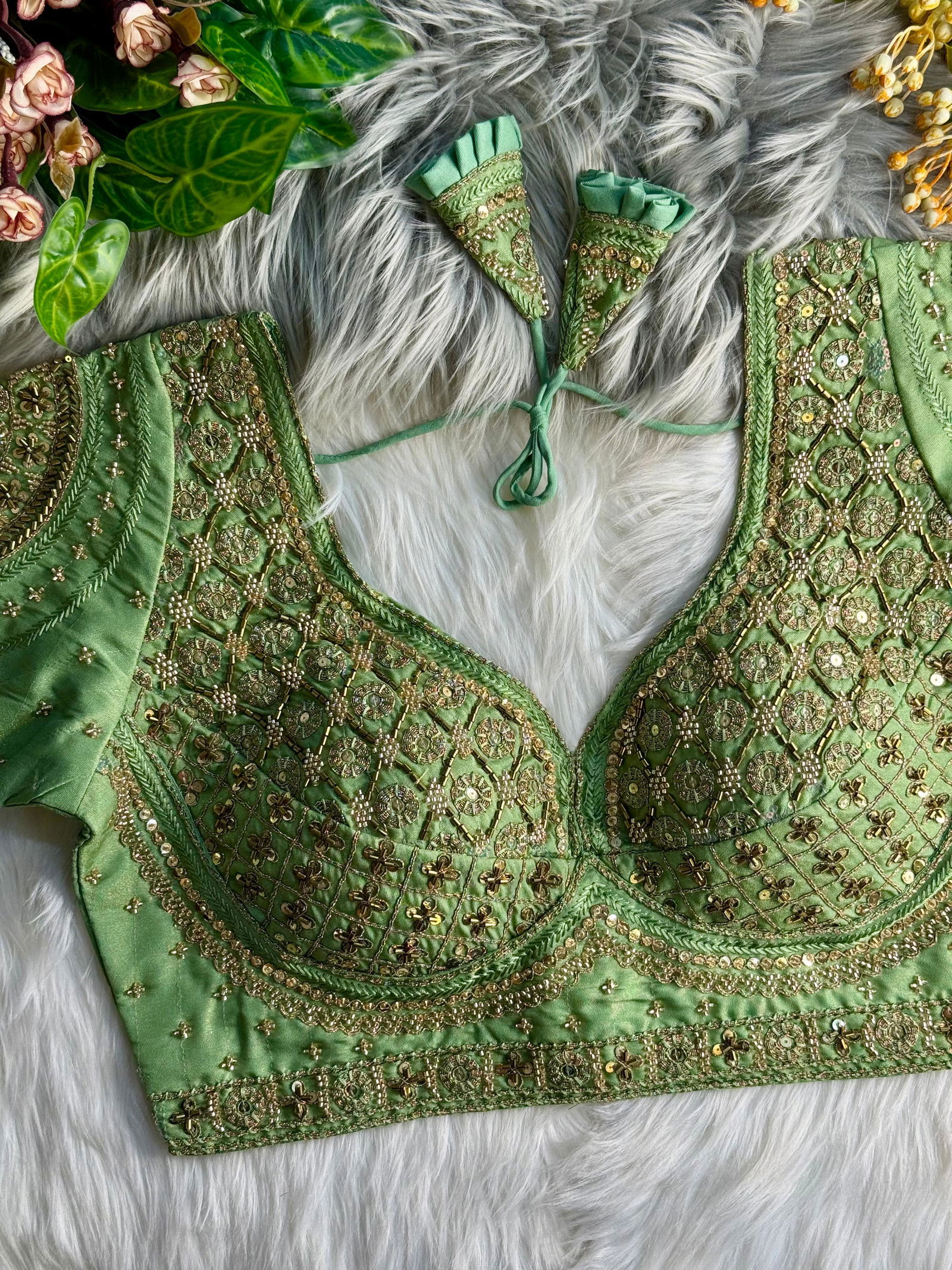 Elevate your festive style with this designer partywear blouse, perfect for weddings and special occasions. Featuring exquisite heavy handwork with sequence and codding thread embroidery, this blouse adds a regal touch to your ethnic look. Its alterable size makes it a comfortable and elegant choice for all-day celebrations.