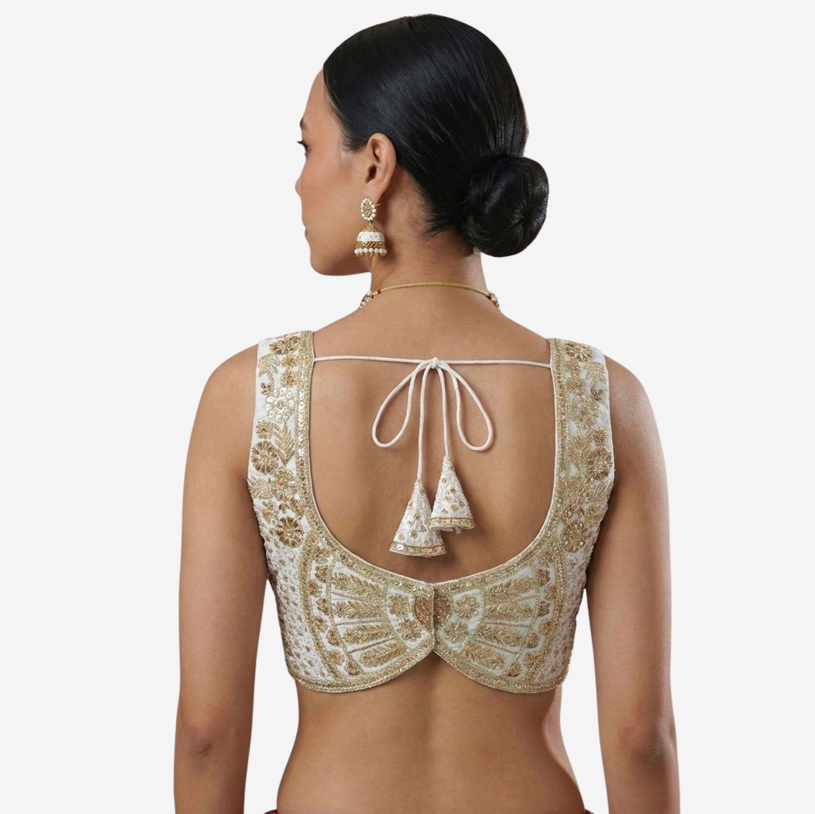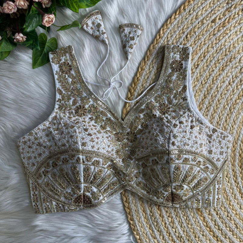 Turn heads at every function in this Heavy Jari + Sequence Thread Work partywear blouse, crafted in premium Heavy Soft Roman Silk for a rich, smooth feel and a festive shine. The blouse features beautiful handmade detailing with heavy stitching for a perfect structured look, along with heavy padding that gives an elegant shape and confident fit.
