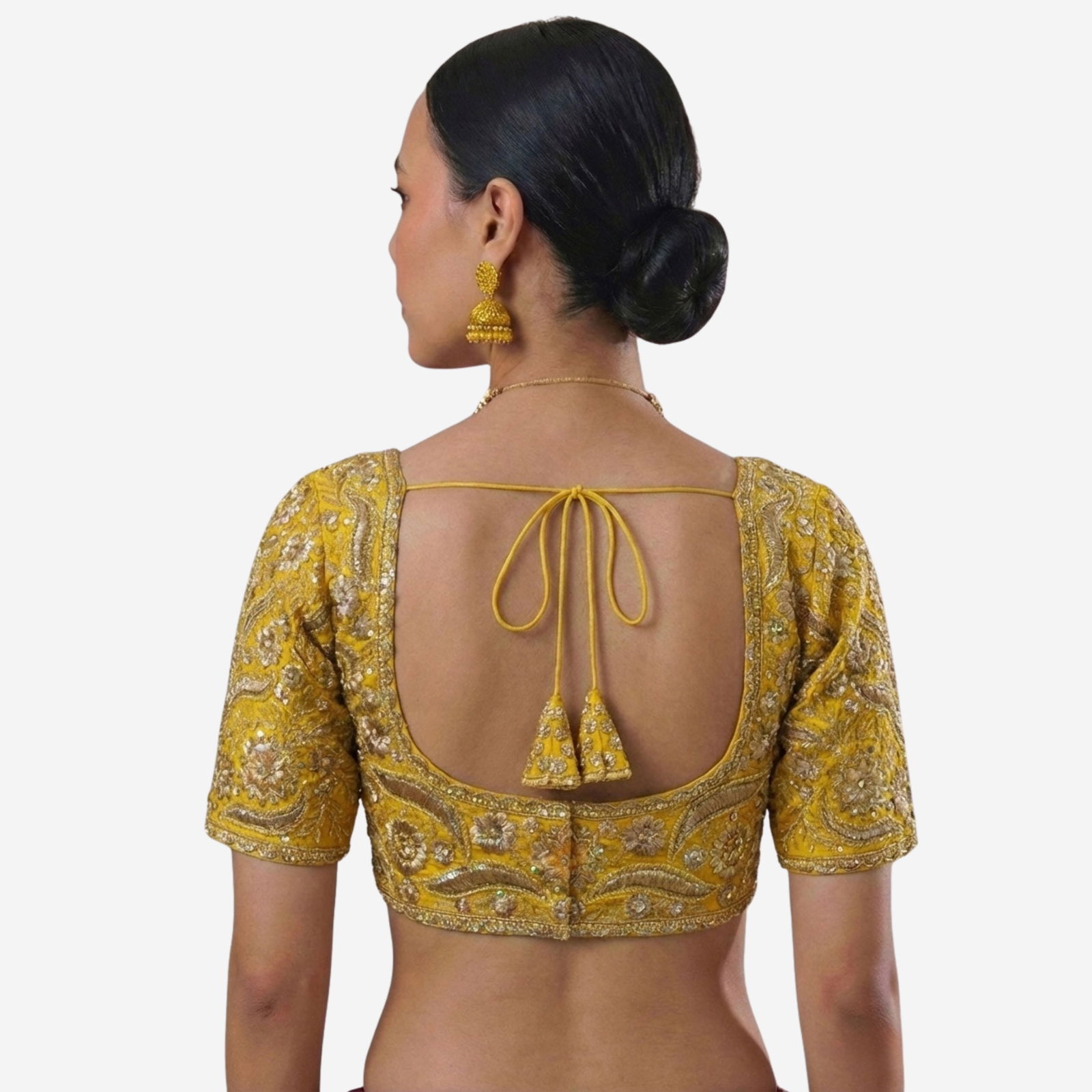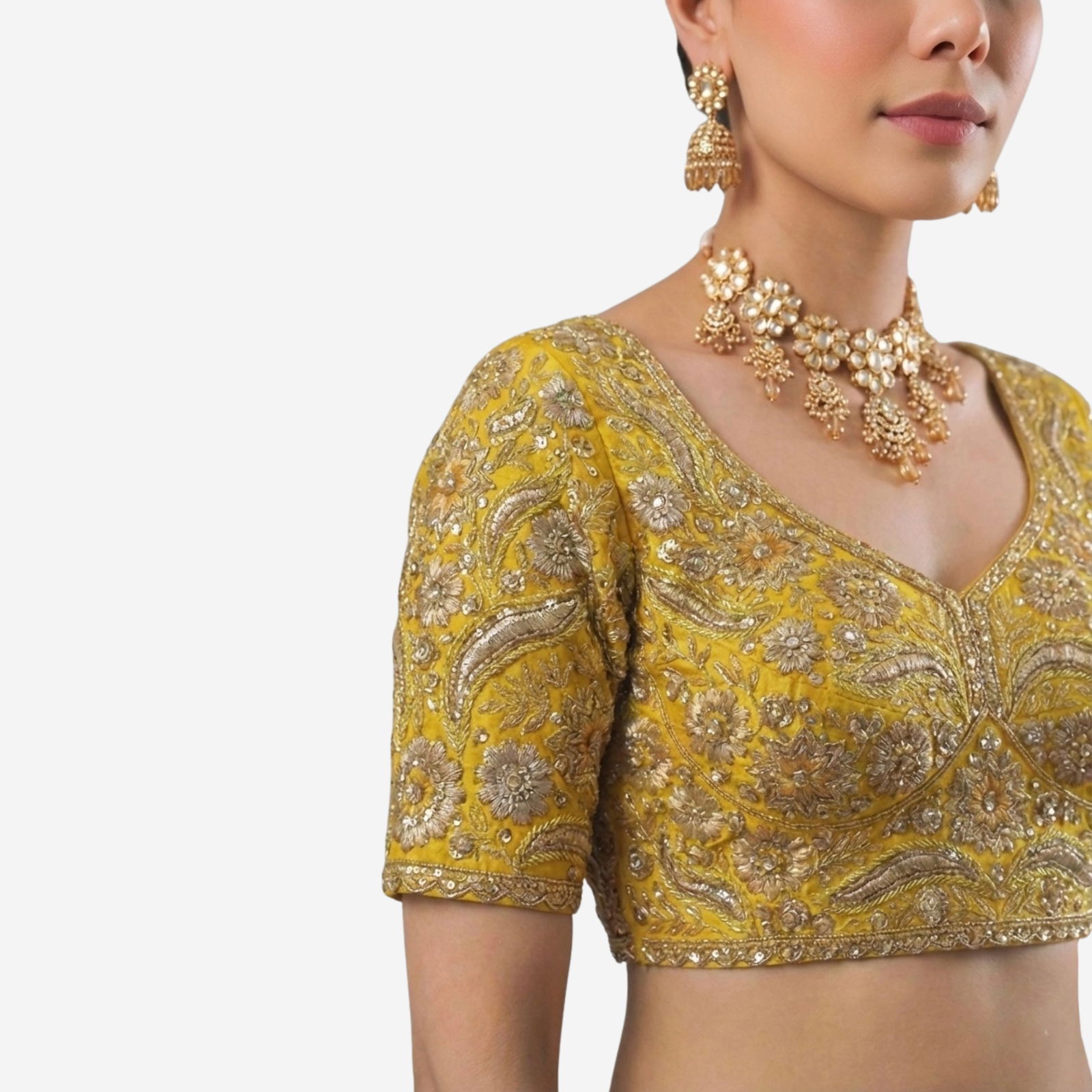 Elevate your bridal look with our Sabyasachi neck Italian Silk readymade blouse, richly embroidered with jari work. This designer bridal blouse offers a regal fit, cotton lining, and padding for comfort. Perfect for weddings, sangeet, and receptions, it pairs beautifully with sarees or lehengas for luxury and a radiant shine.