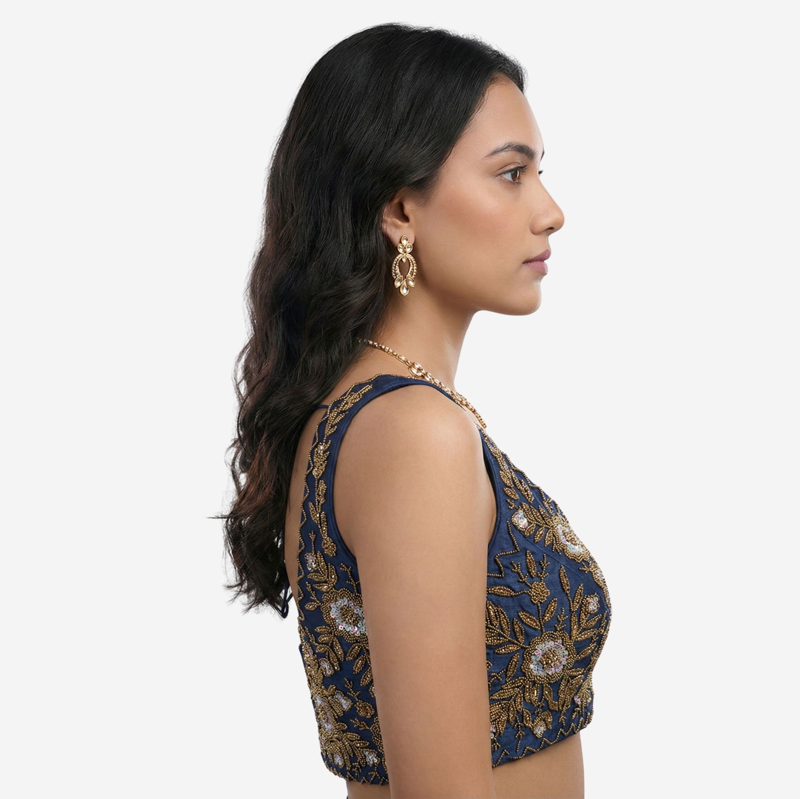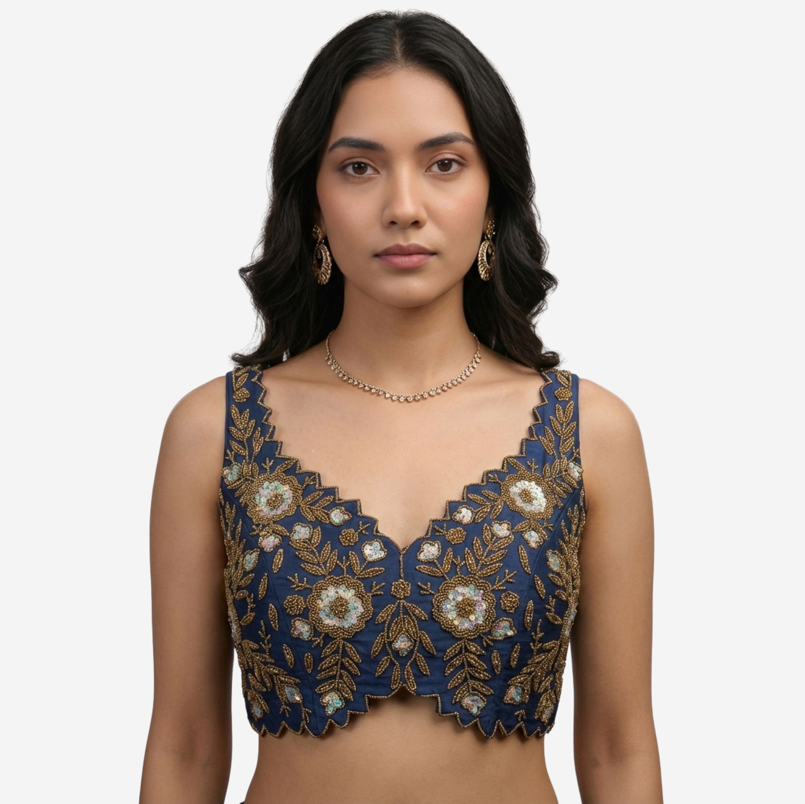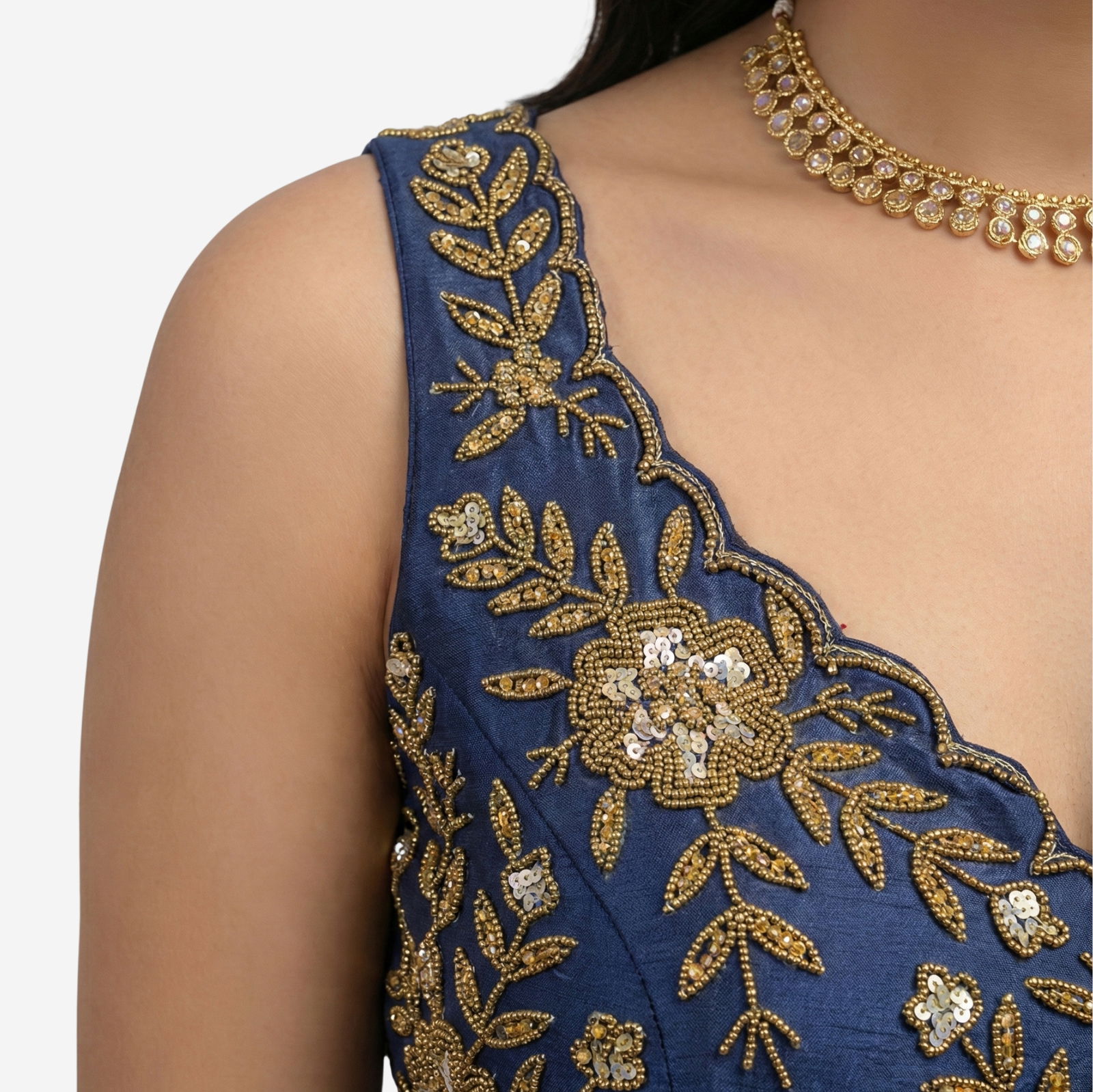 : Zardosi Handwork (floral motif embroidery with bead/sequin detailing)