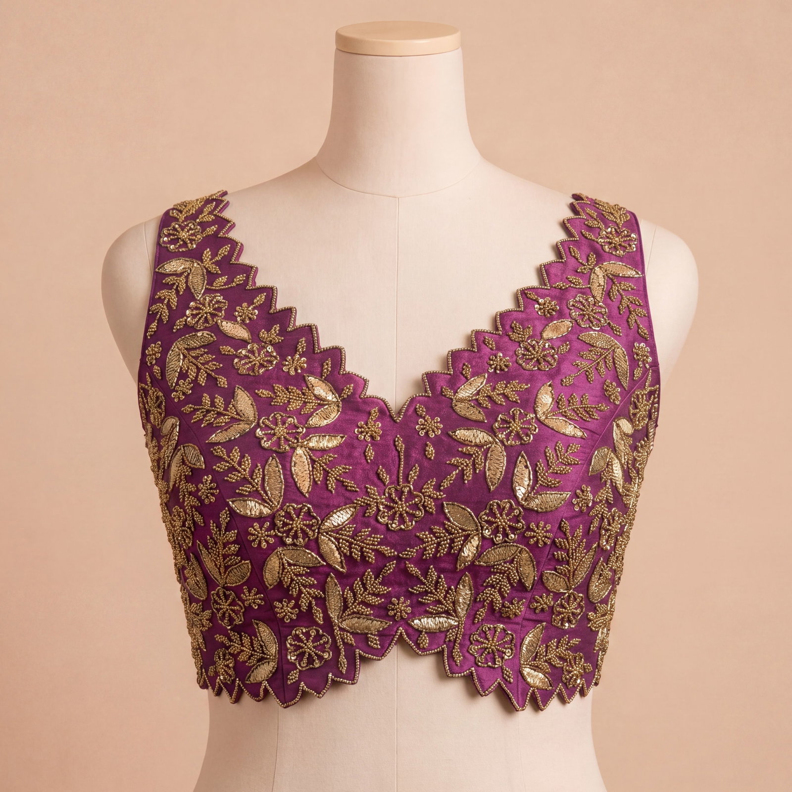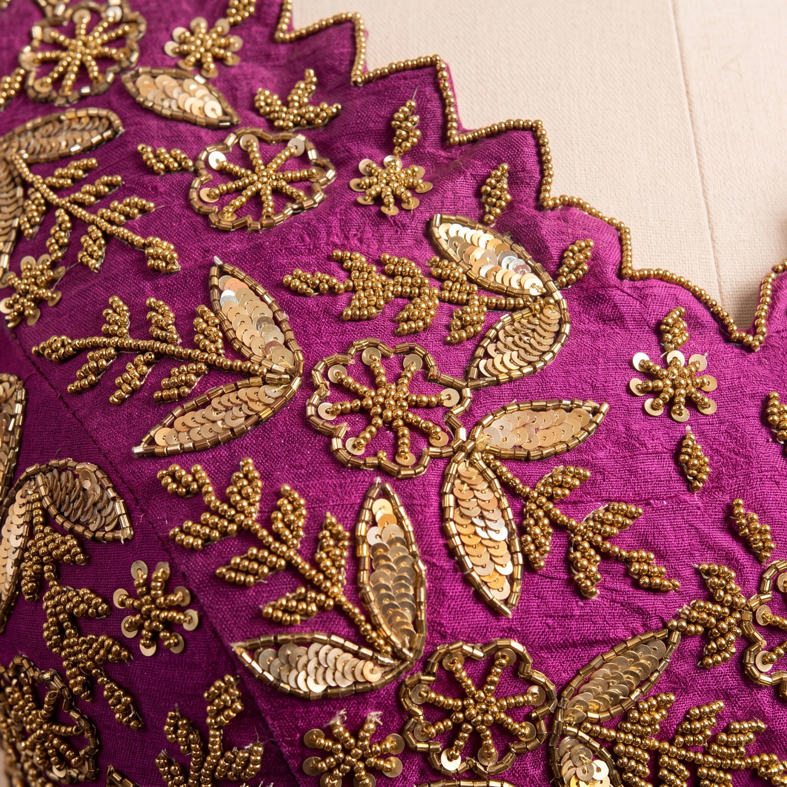 : Zardosi Handwork (floral motif embroidery with bead/sequin detailing)