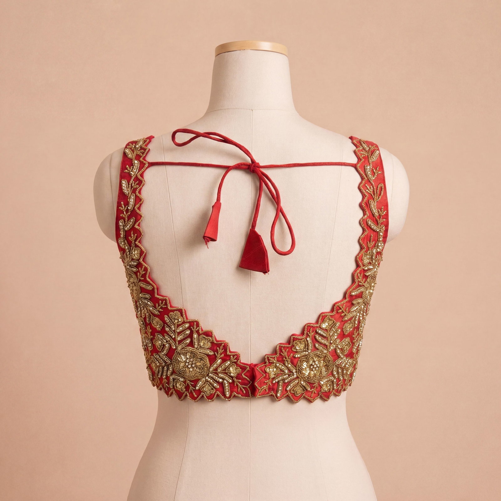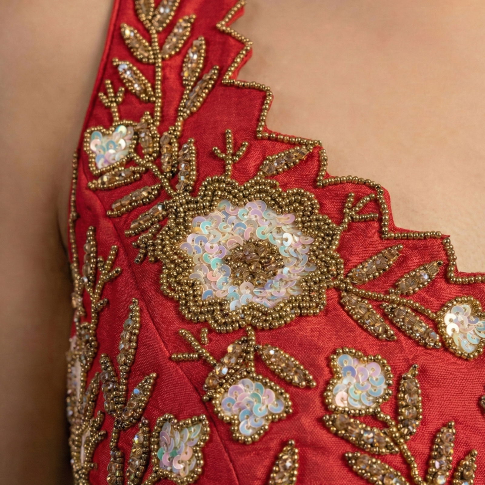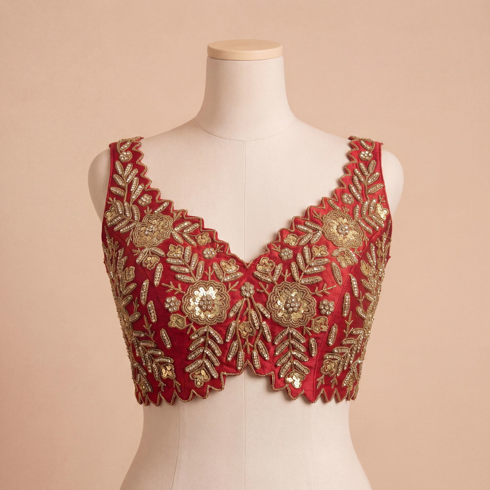 : Zardosi Handwork (floral motif embroidery with bead/sequin detailing)