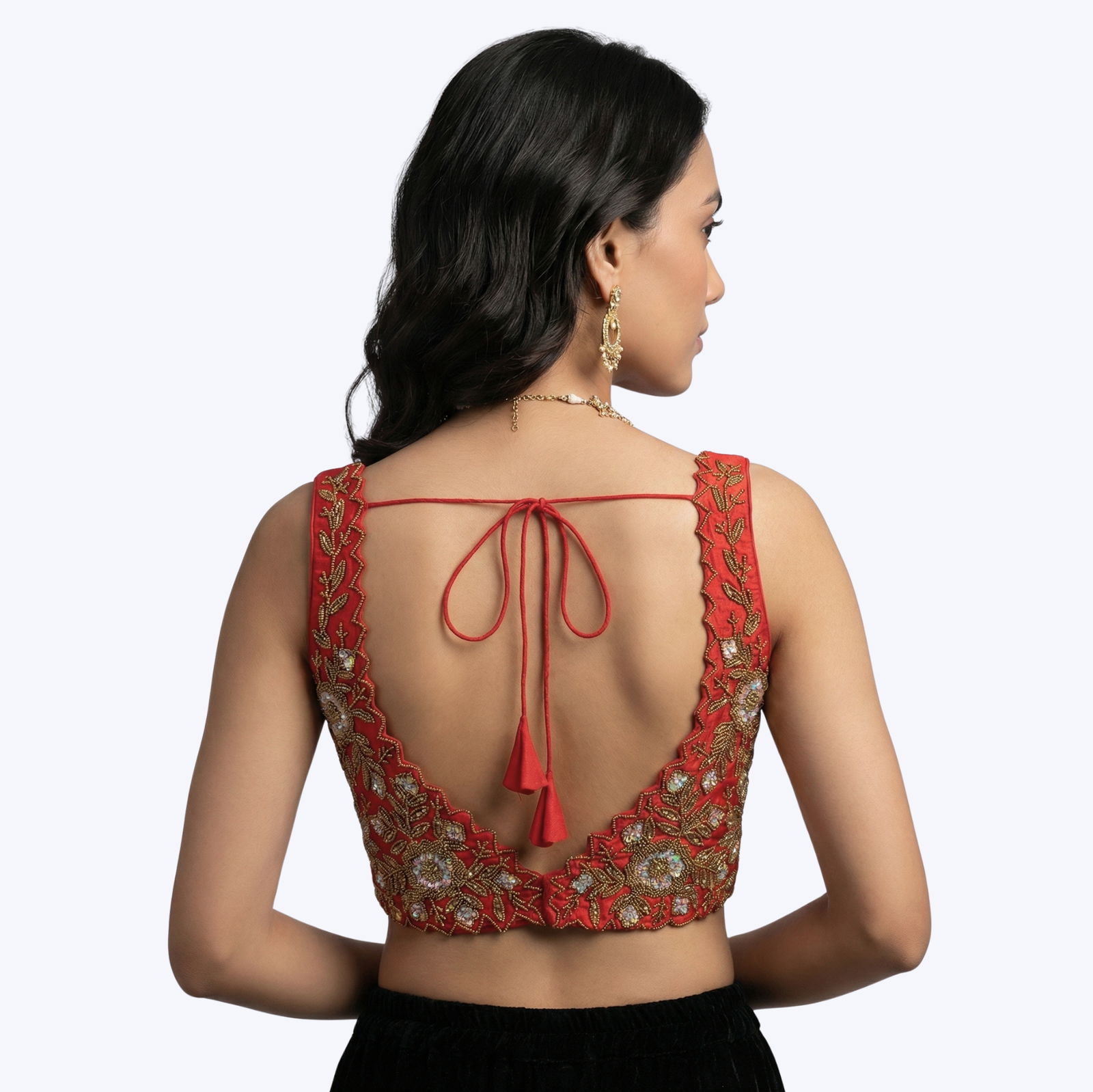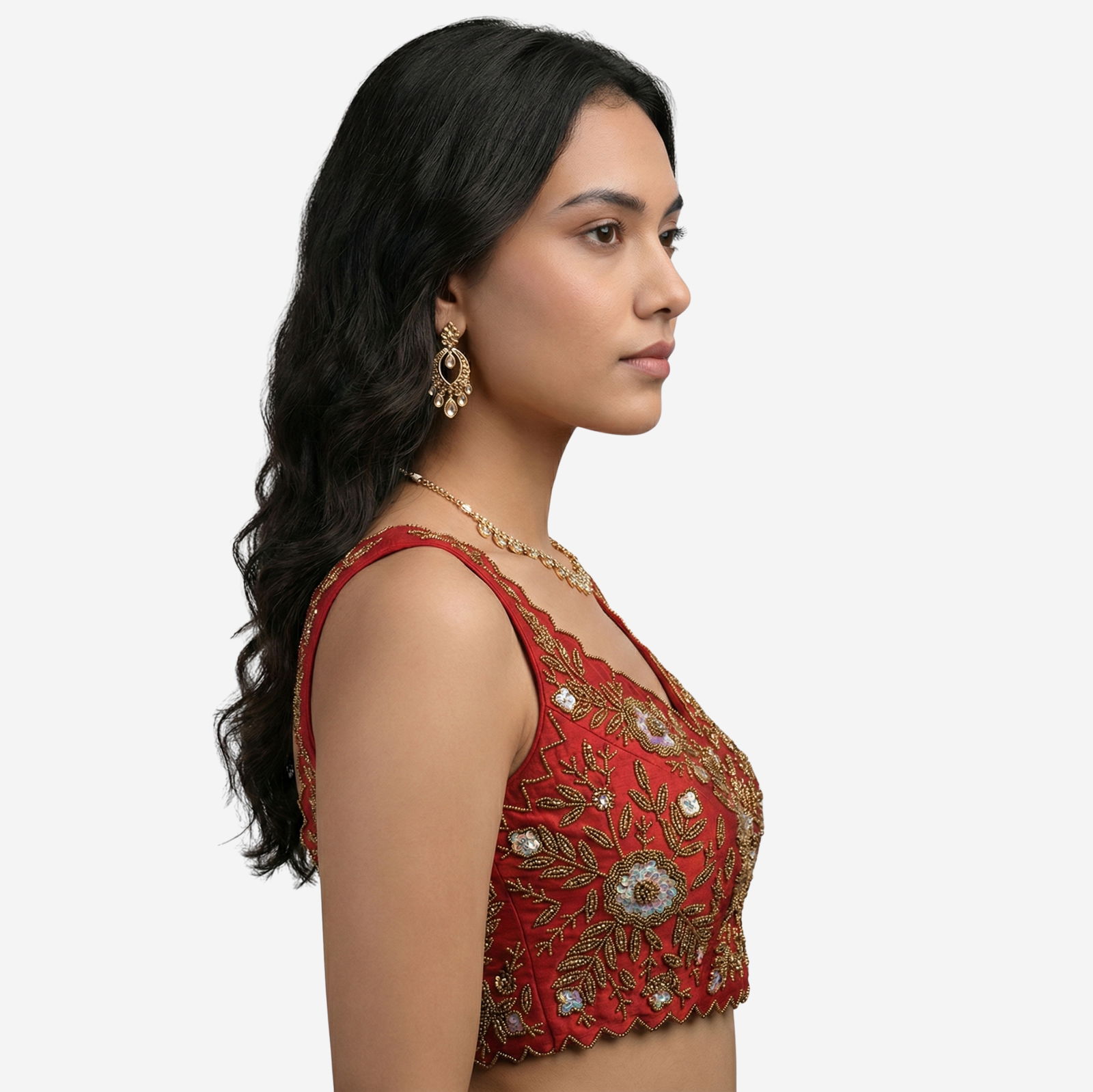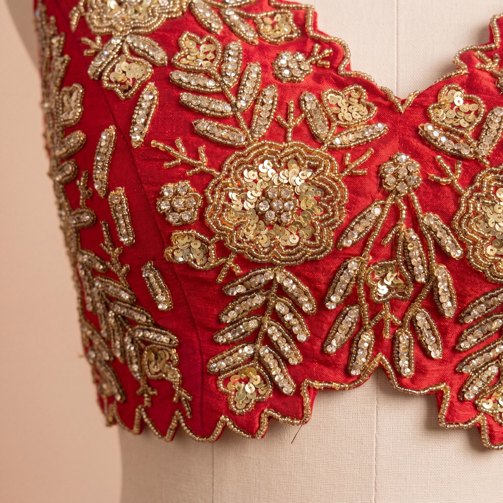 : Zardosi Handwork (floral motif embroidery with bead/sequin detailing)