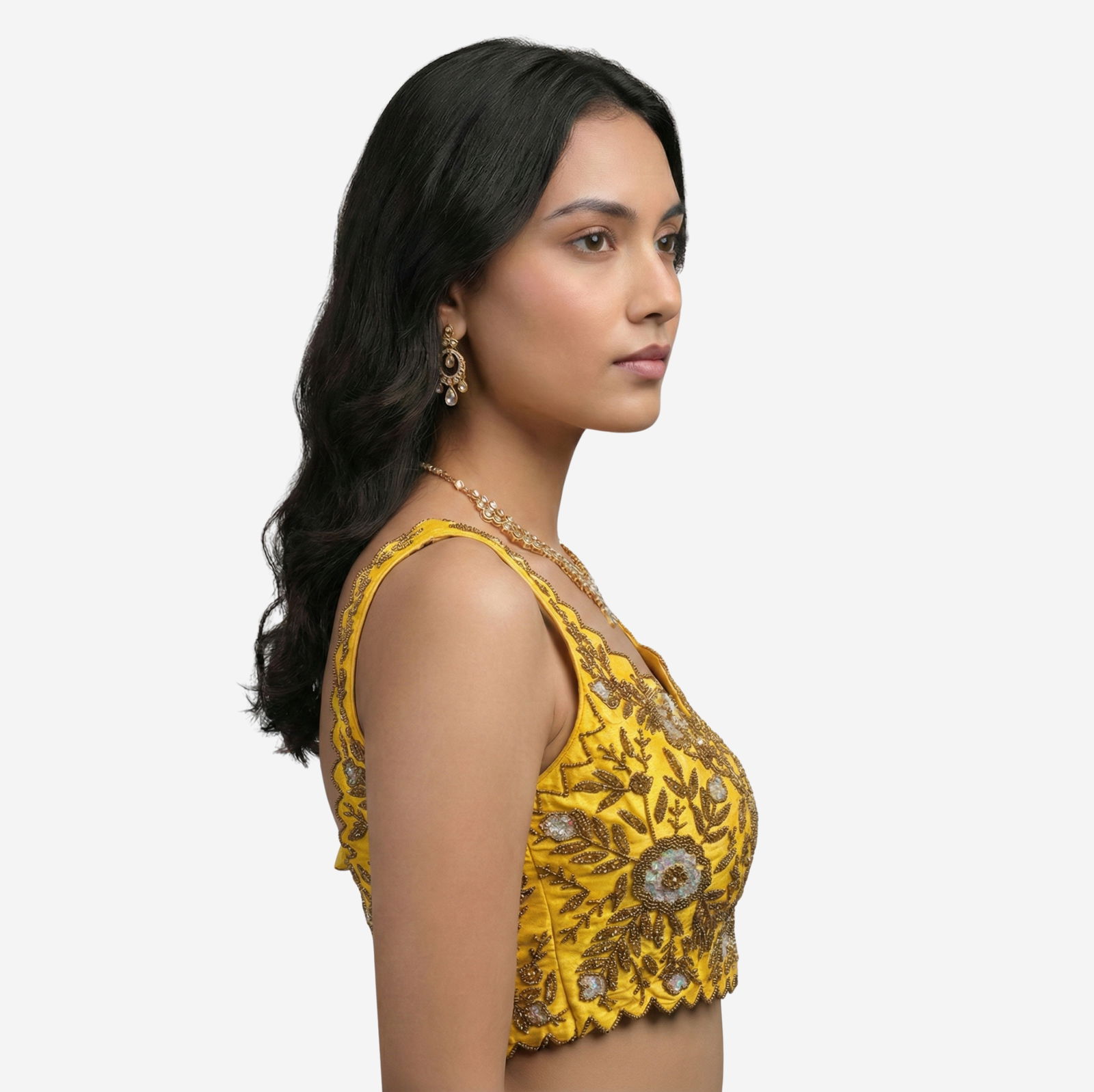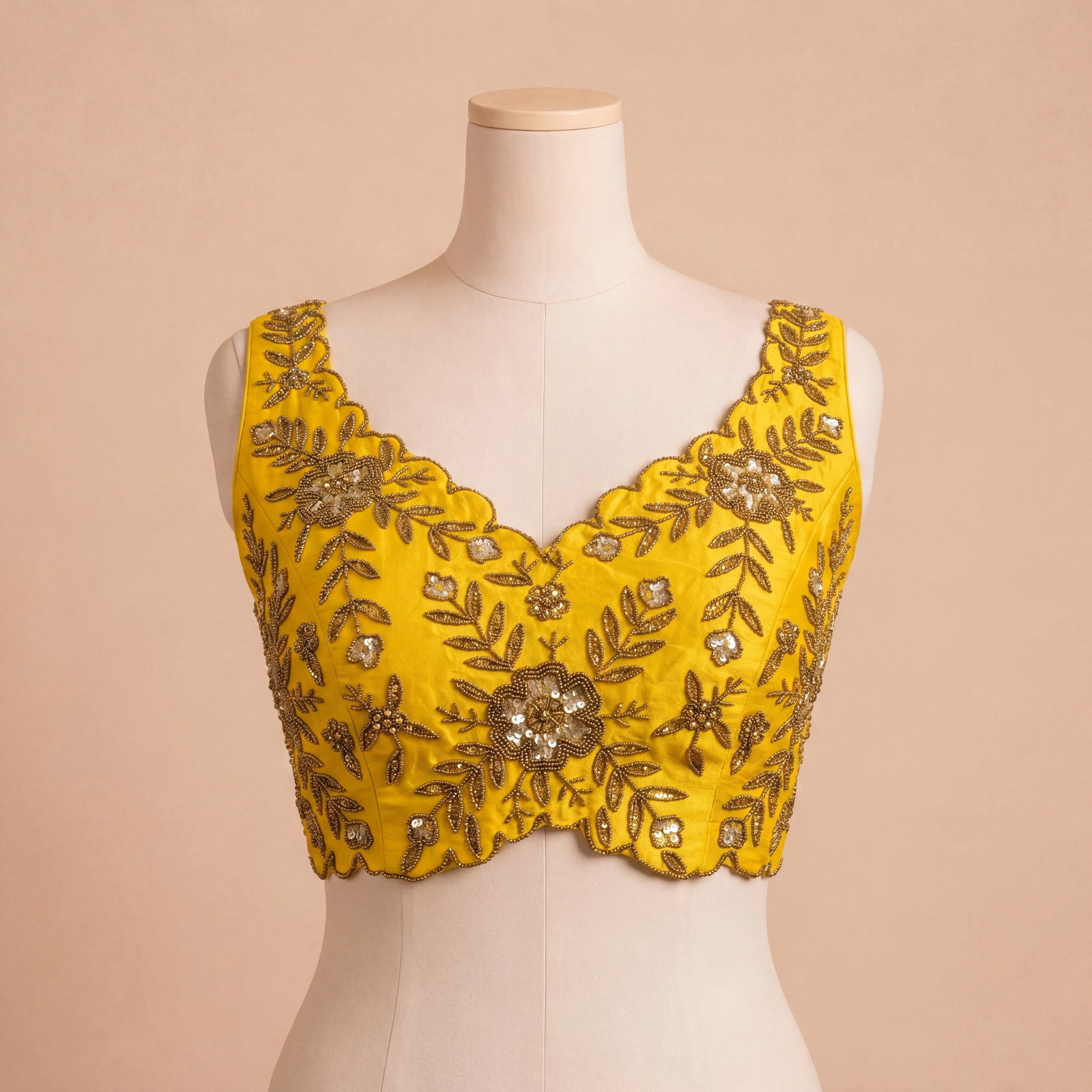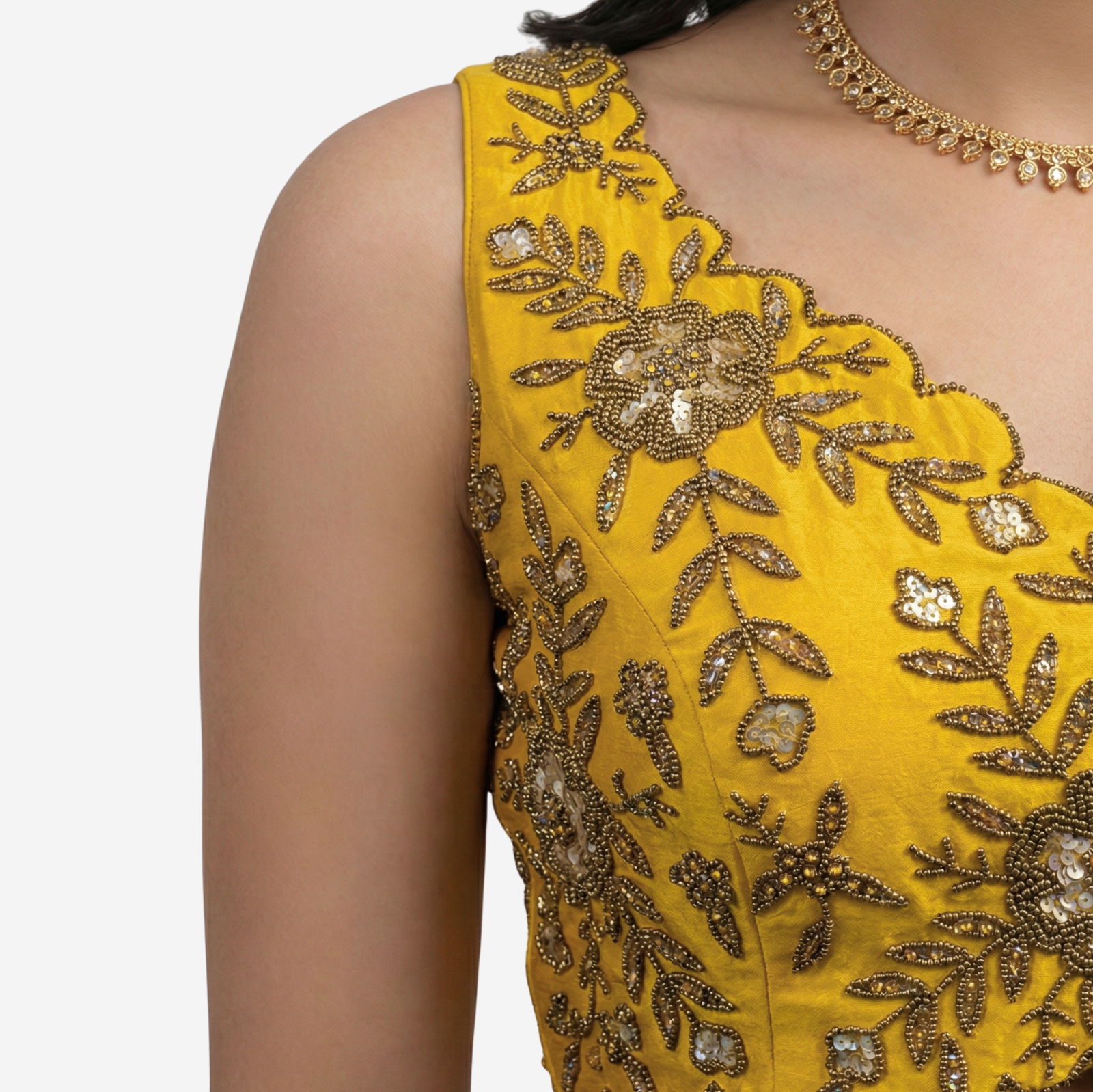 : Zardosi Handwork (floral motif embroidery with bead/sequin detailing)